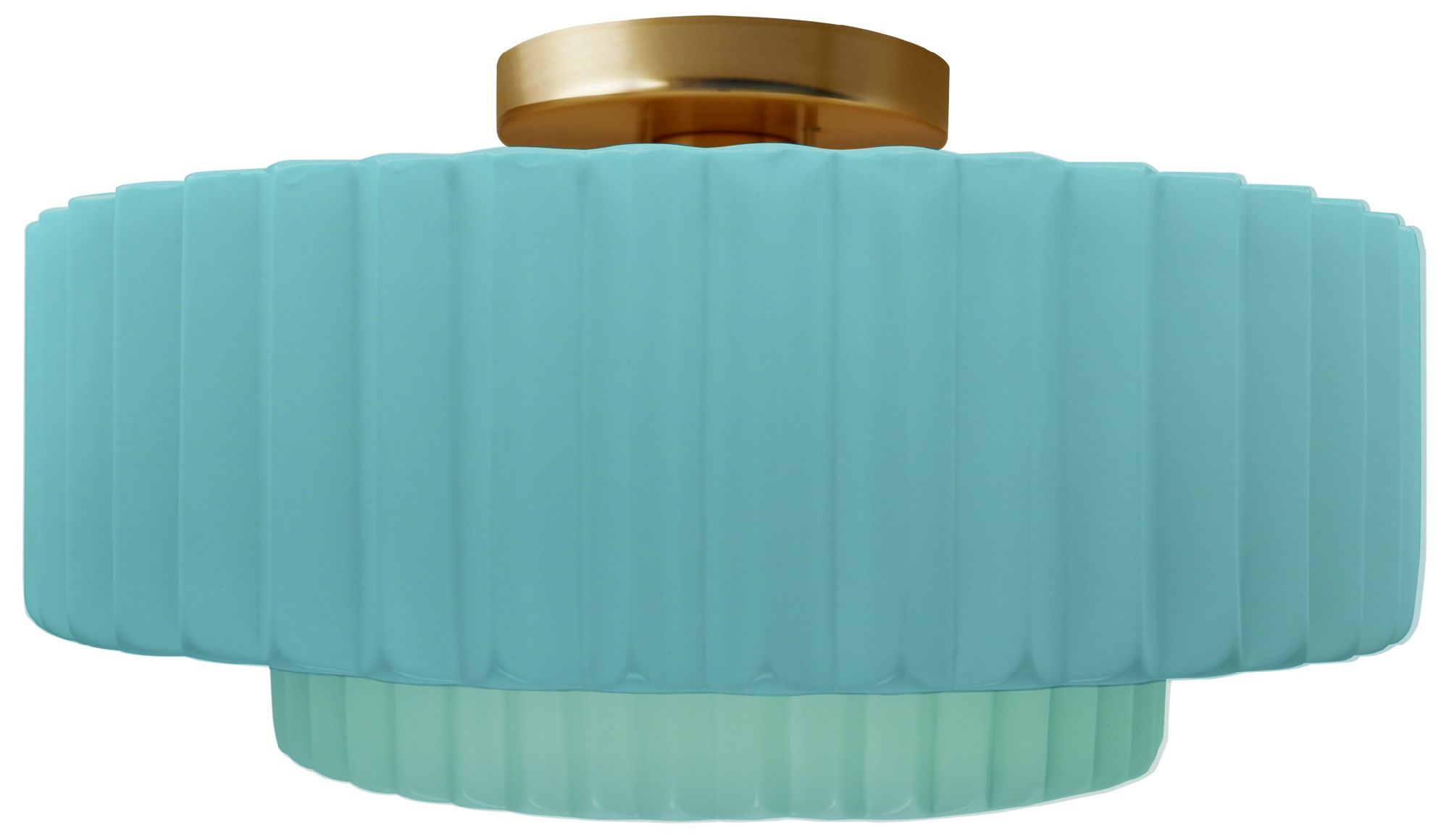 14.5"W Reflecting Pool Frame Brushed Brass Tier Pleated LED Semi.Flush