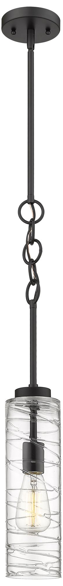 Wexford 4" Matte Black Stem Hung Mini Pendant w/ Clear Deco Swirl Shad