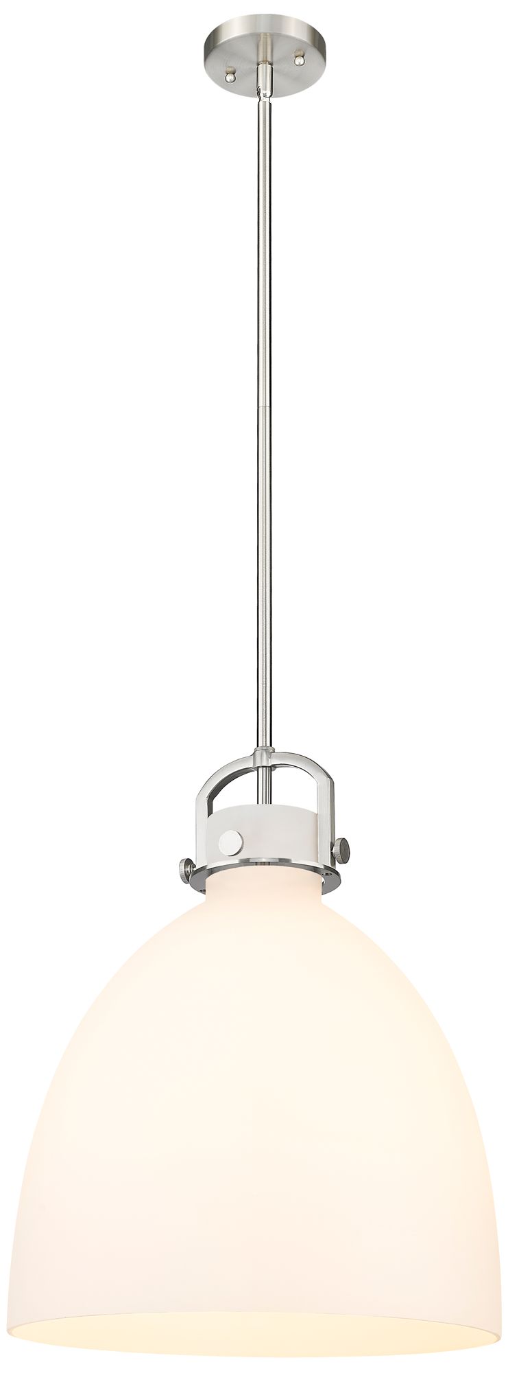 Newton Bell 16" Wide Stem Hung Satin Nickel Pendant With White Shade
