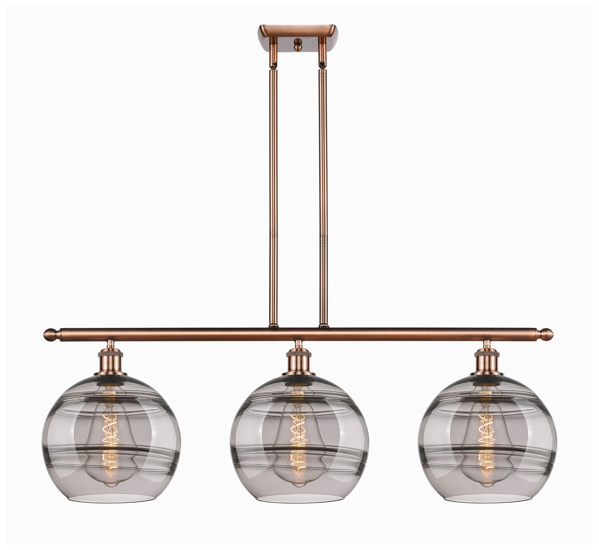 Ballston Rochester 36.5"W 3-Light Copper Stem Island Light w/ Smoke Sh
