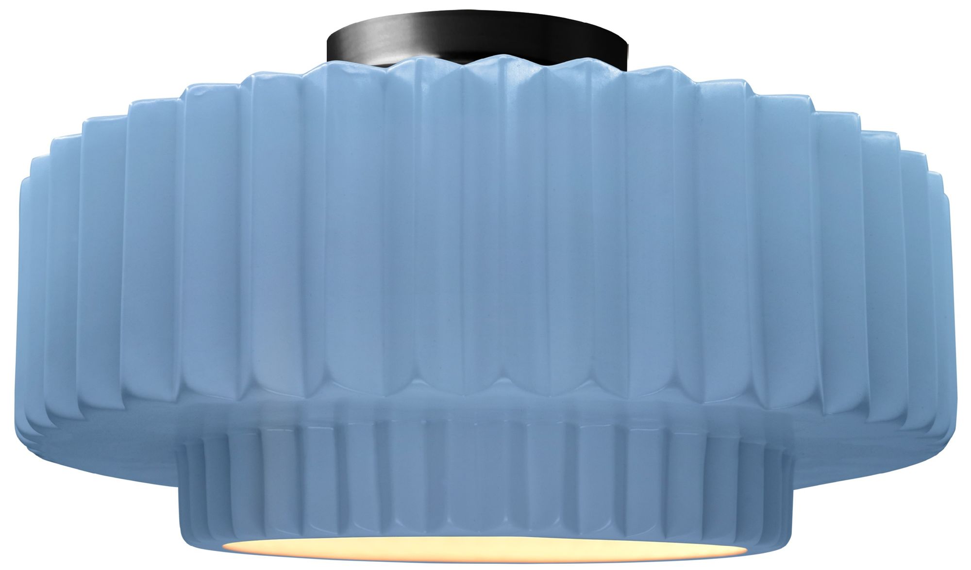 Radiance 14.5"W Sky Blue Frame Matte Black Tier Pleated LED Semi.Flush