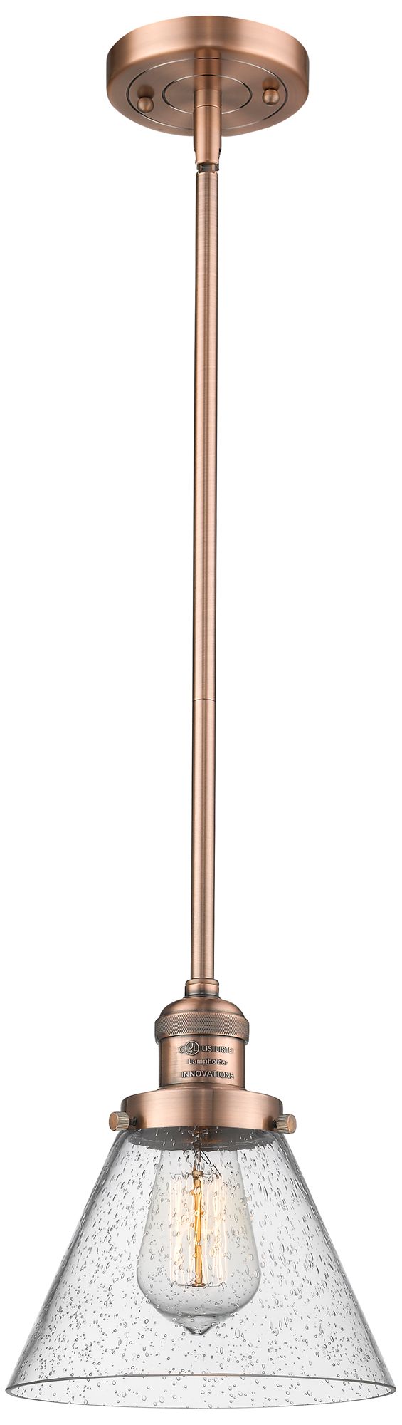 Franklin Restoration Cone 8" Copper Stemmed Mini Pendant w/ Seedy Shad