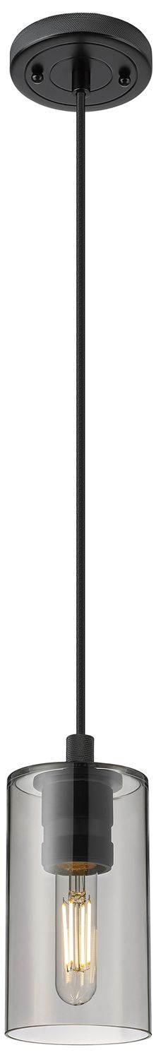 Crown Point 3.88"W Matte Black Cord Hung Pendant With Plated Smoke Sha
