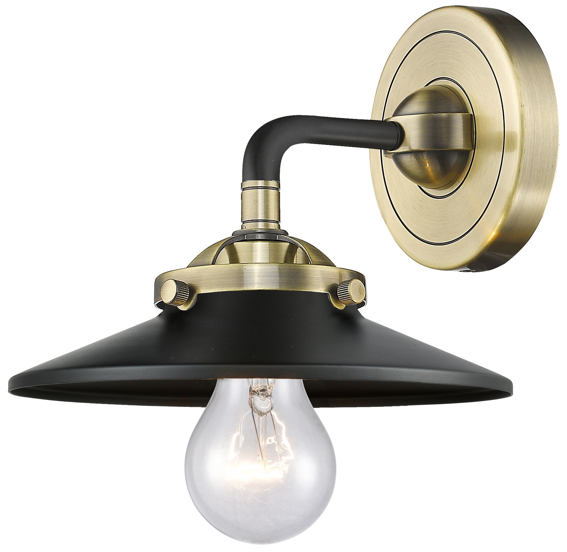 Nouveau Railroad 5.25" High Black Brass Sconce w/ Matte Black Shade