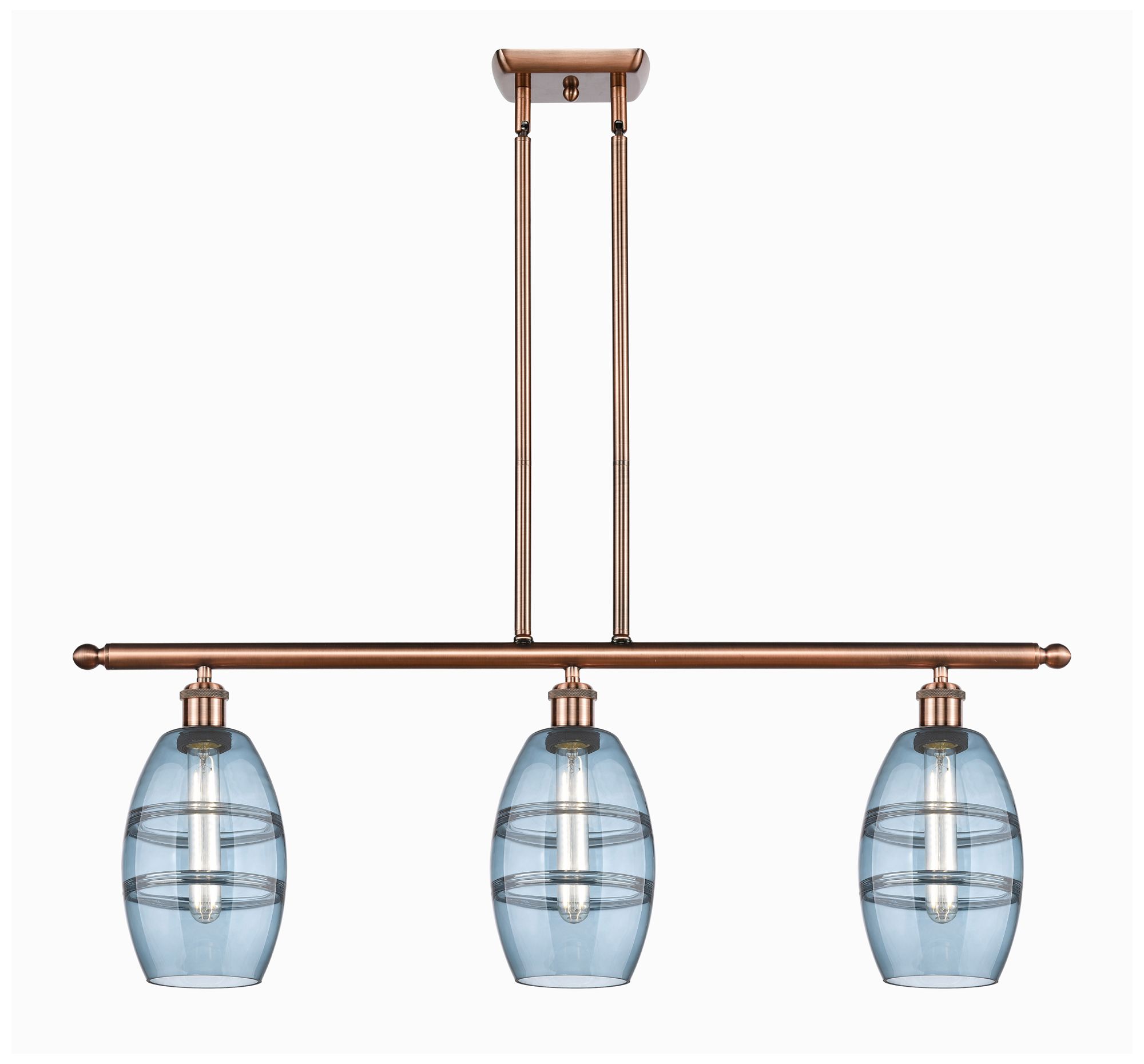 Ballston Vaz 36"W 3-Light Copper Stem Island Light w/ 6" Blue Sha