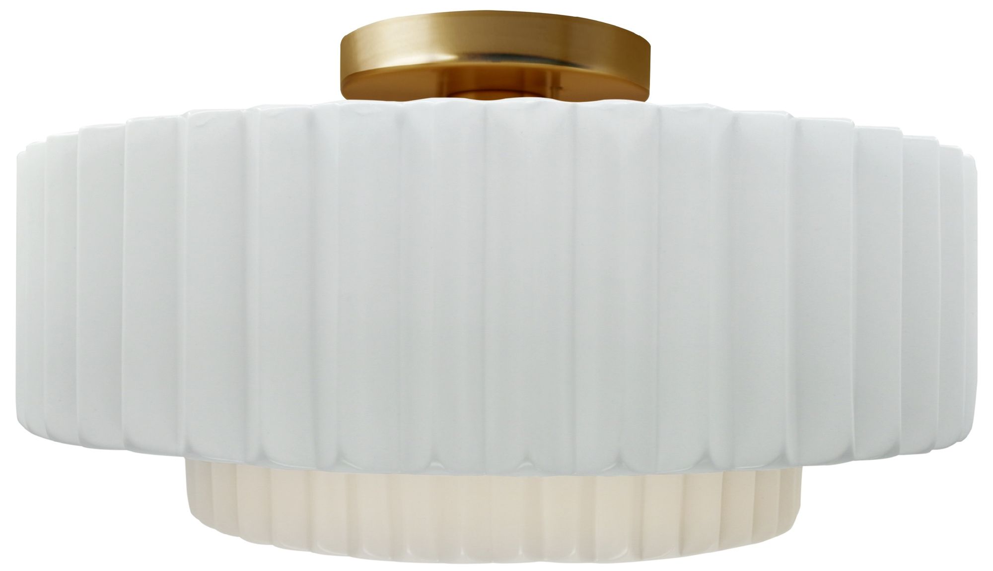 Radiance 14.5"W Gloss White Frame Brushed Brass Tier Pleated Semi.Flus