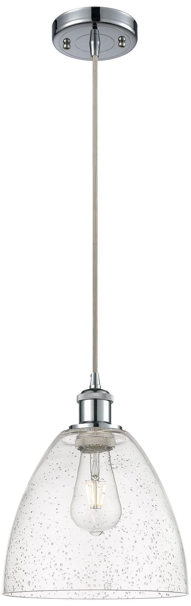 Ballston Bristol Glass 9" Mini Pendant - Polished Chrome - Seedy Shade