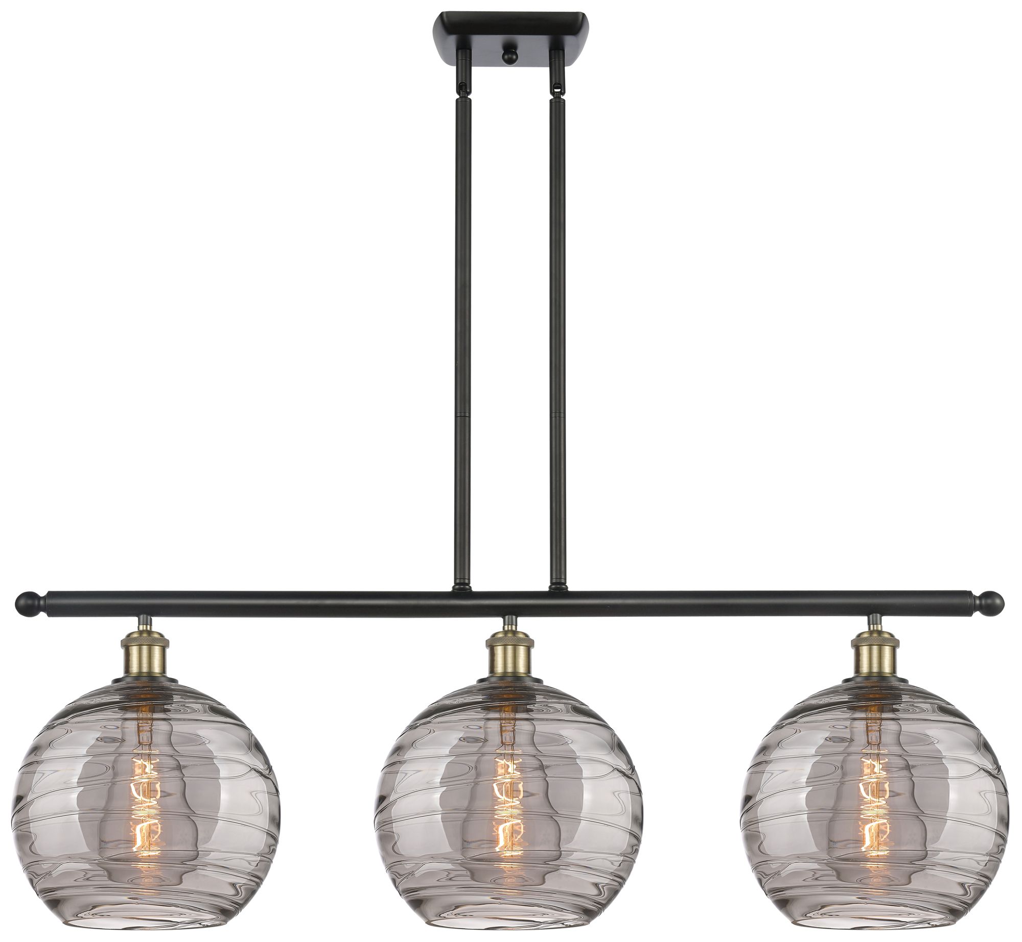 Athens 36.5"W 3-Light Black Brass Stem Island Light w/ Smoke Swirl Sha