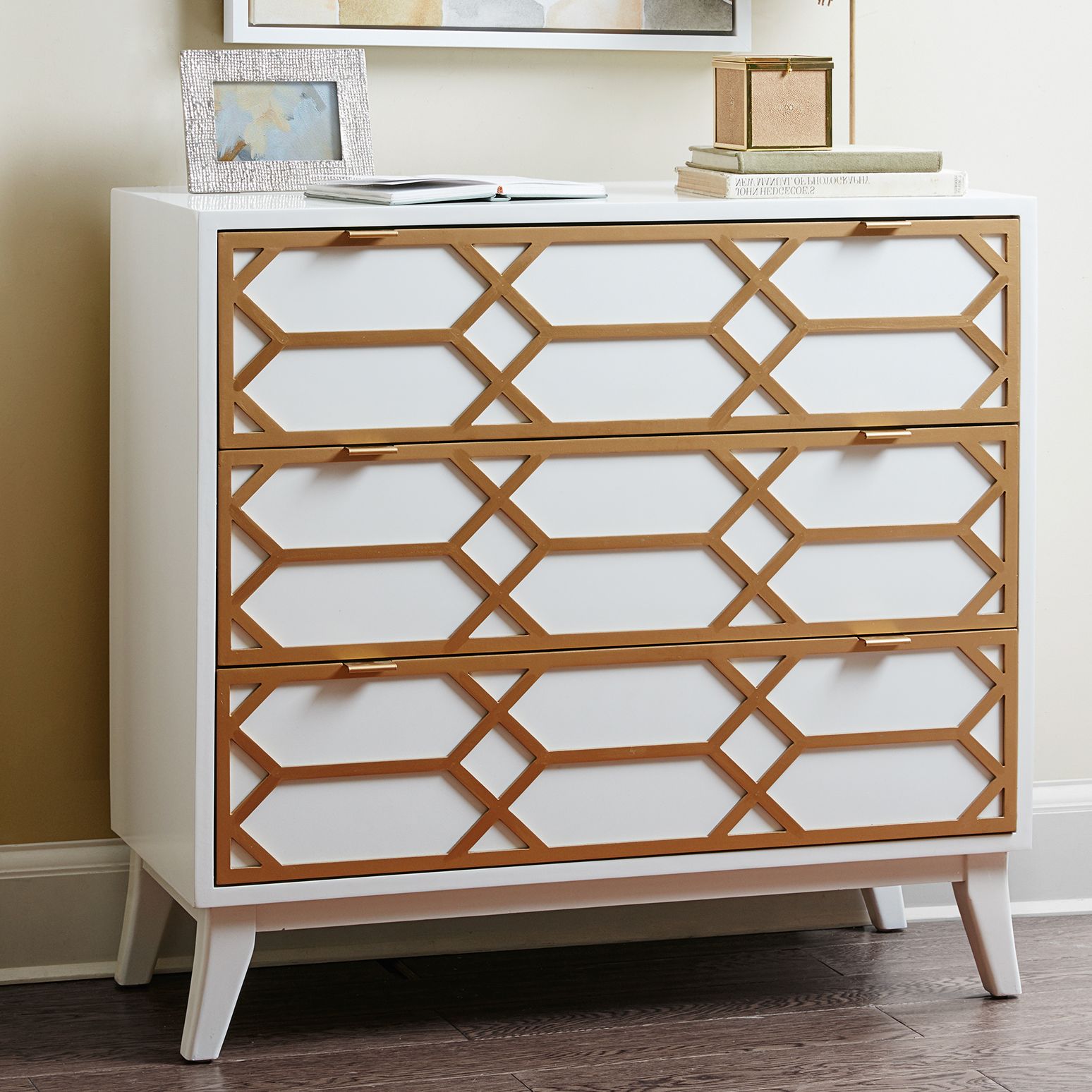 Gabrielle 36" Wide White Gold Wood 3-Drawer Accent Chest