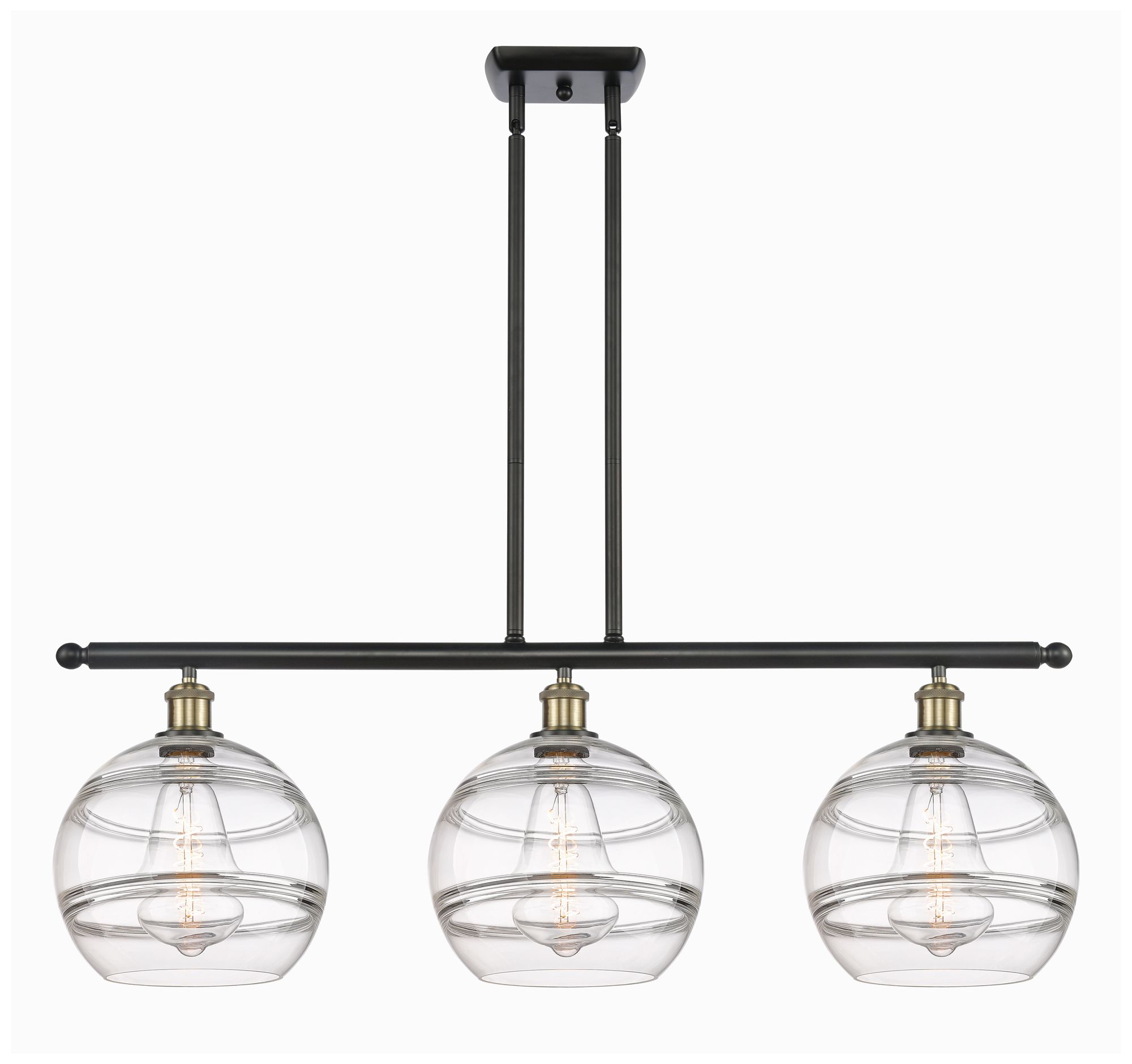 Rochester 36.5"W 3-Light Black Brass Stem Island Light w/ Clear Shade