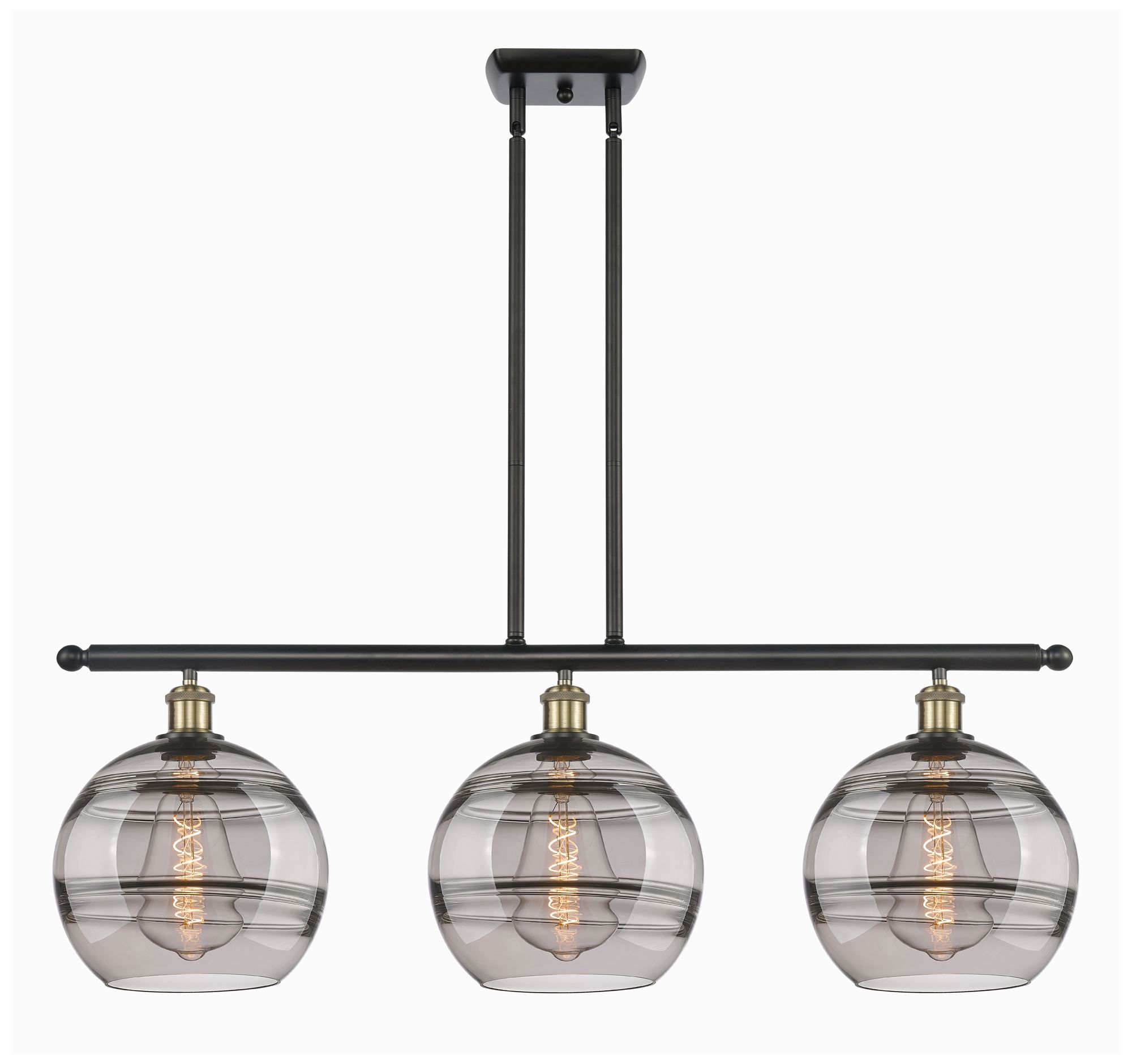 Rochester 36.5"W 3-Light Black Brass Stem Island Light w/ Smoke Shade
