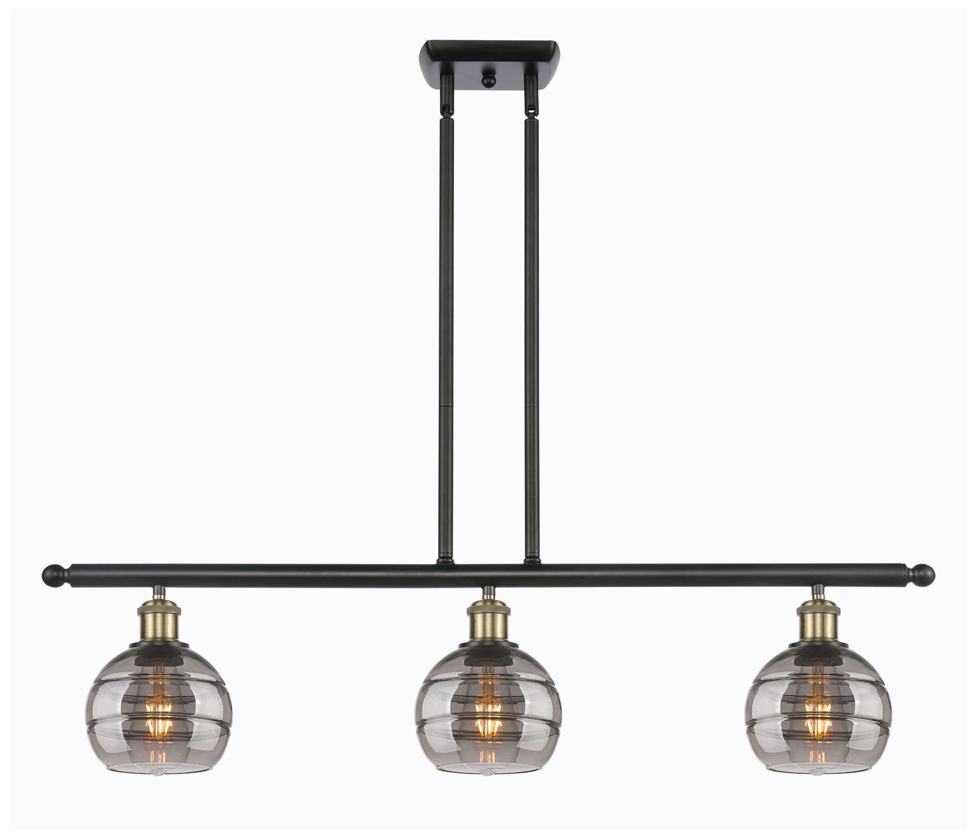 Rochester 36"W 3-Light Black Brass Stem Island Light w/ 6" Smoke