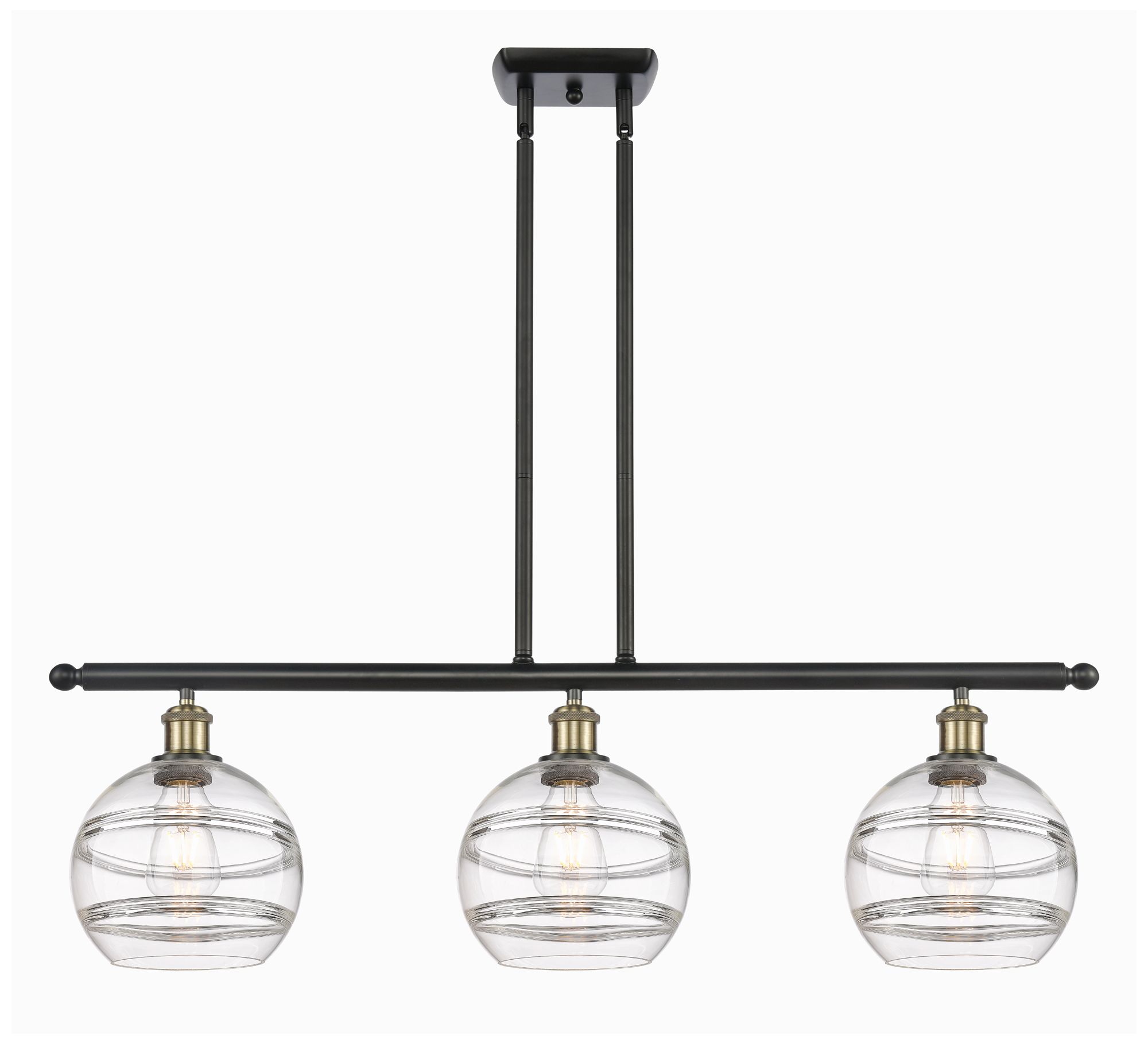 Rochester 36"W 3-Light Black Brass Stem Island Light w/ 8" Clear