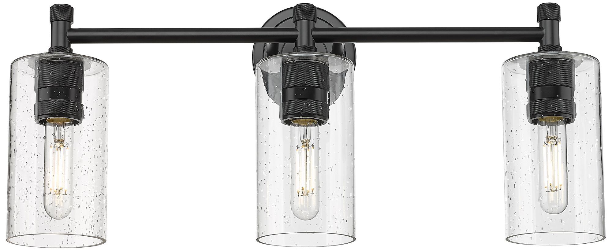 Crown Point 24" Wide 3 Light Matte Black Bath Light With Seedy Shade