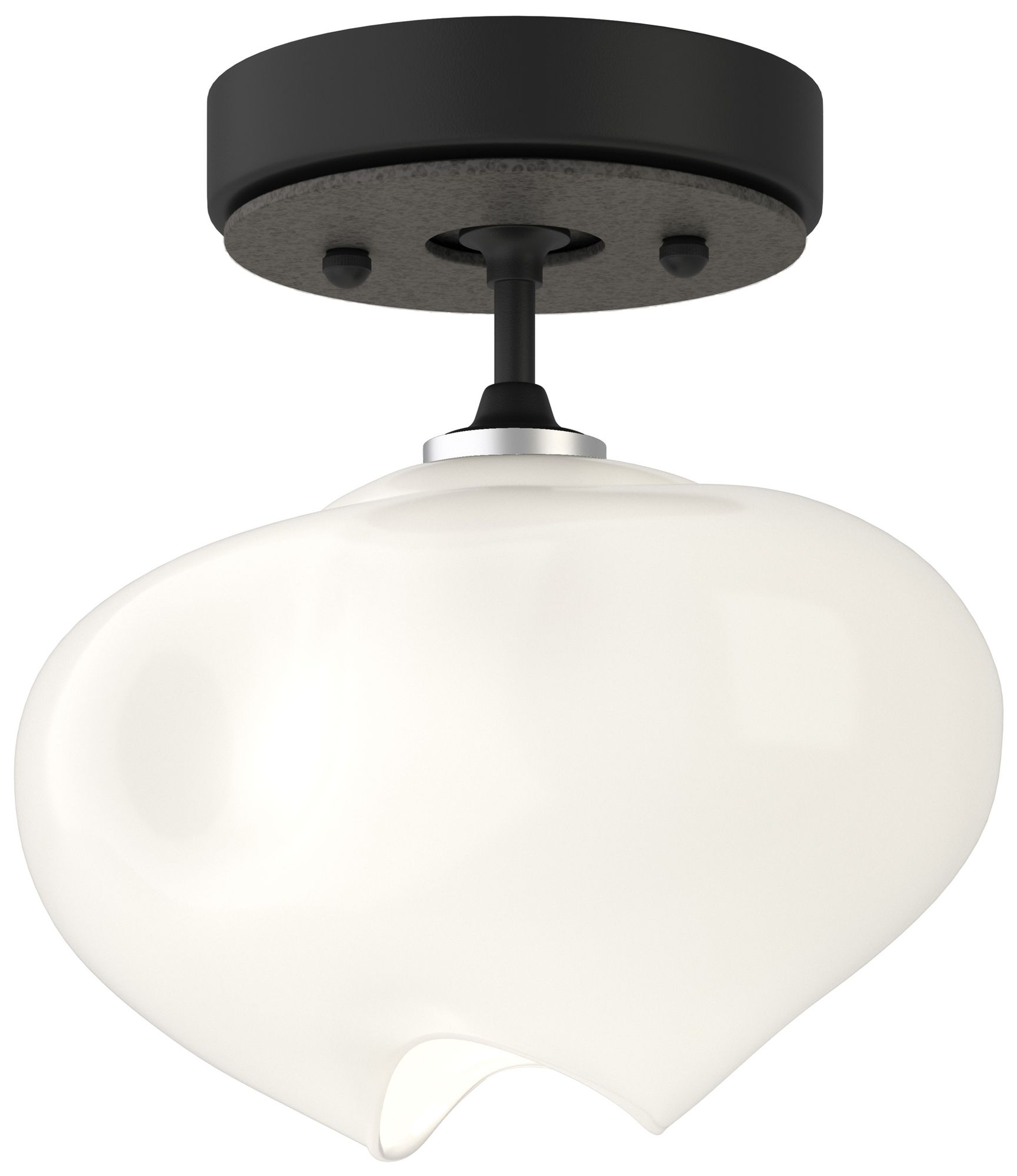 Ume 6.3" Wide Natural Iron Accented Black Semi-Flush With Frosted Glas