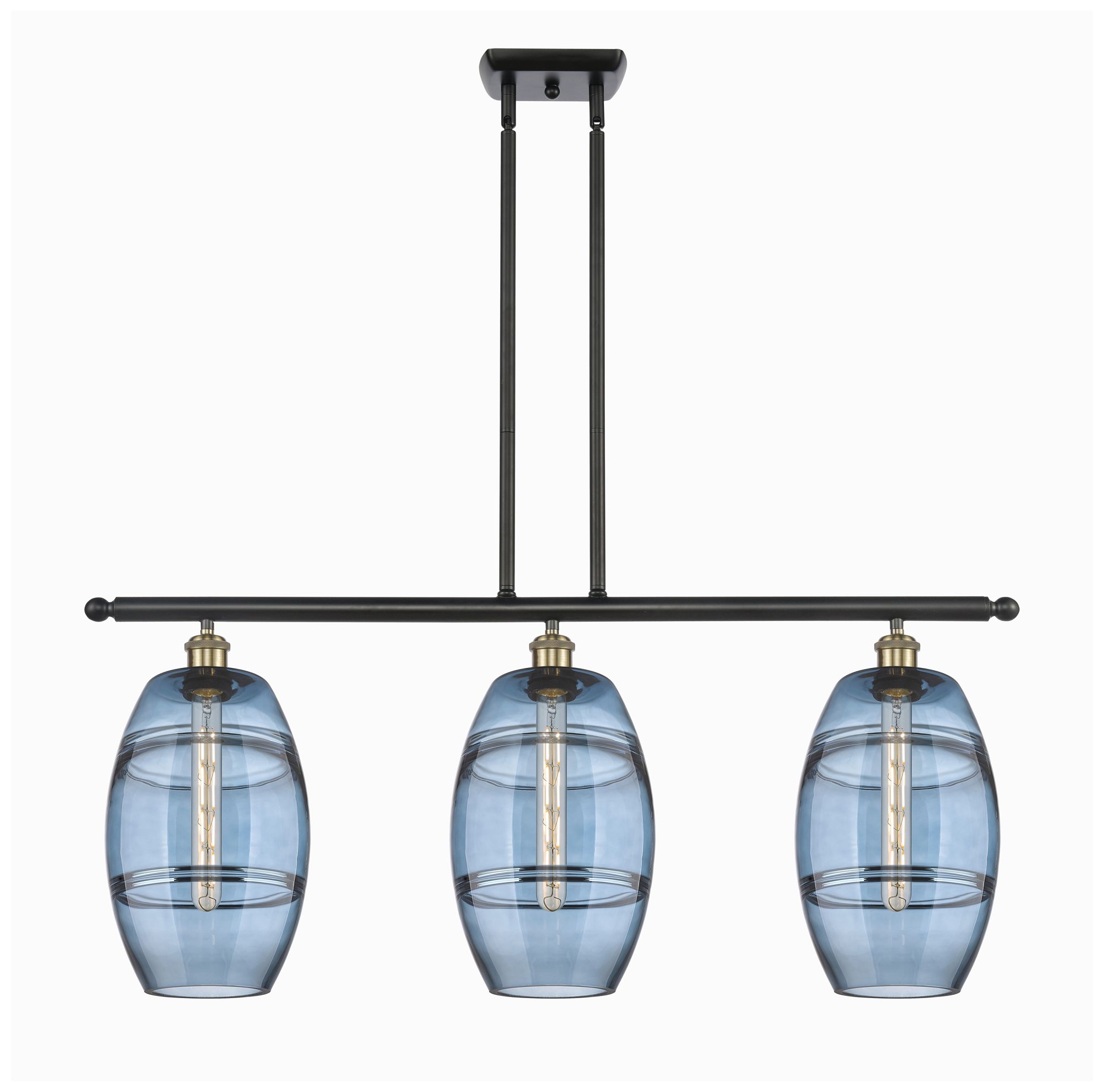 Ballston Vaz 36"W 3-Light Black Brass Stem Island Light w/ 8" Blu