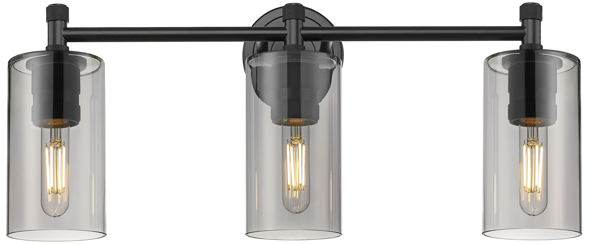 Crown Point 24" Wide 3 Light Matte Black Bath Light With Smoke Shade