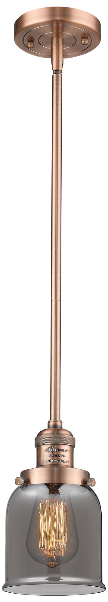 Franklin Restoration Bell 5" Copper Stemmed Mini Pendant w/ Smoke Shad
