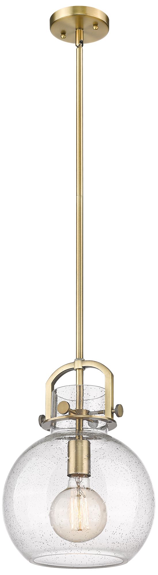 Newton Sphere 10" Wide Stem Hung Brushed Brass Pendant With Seedy Shad