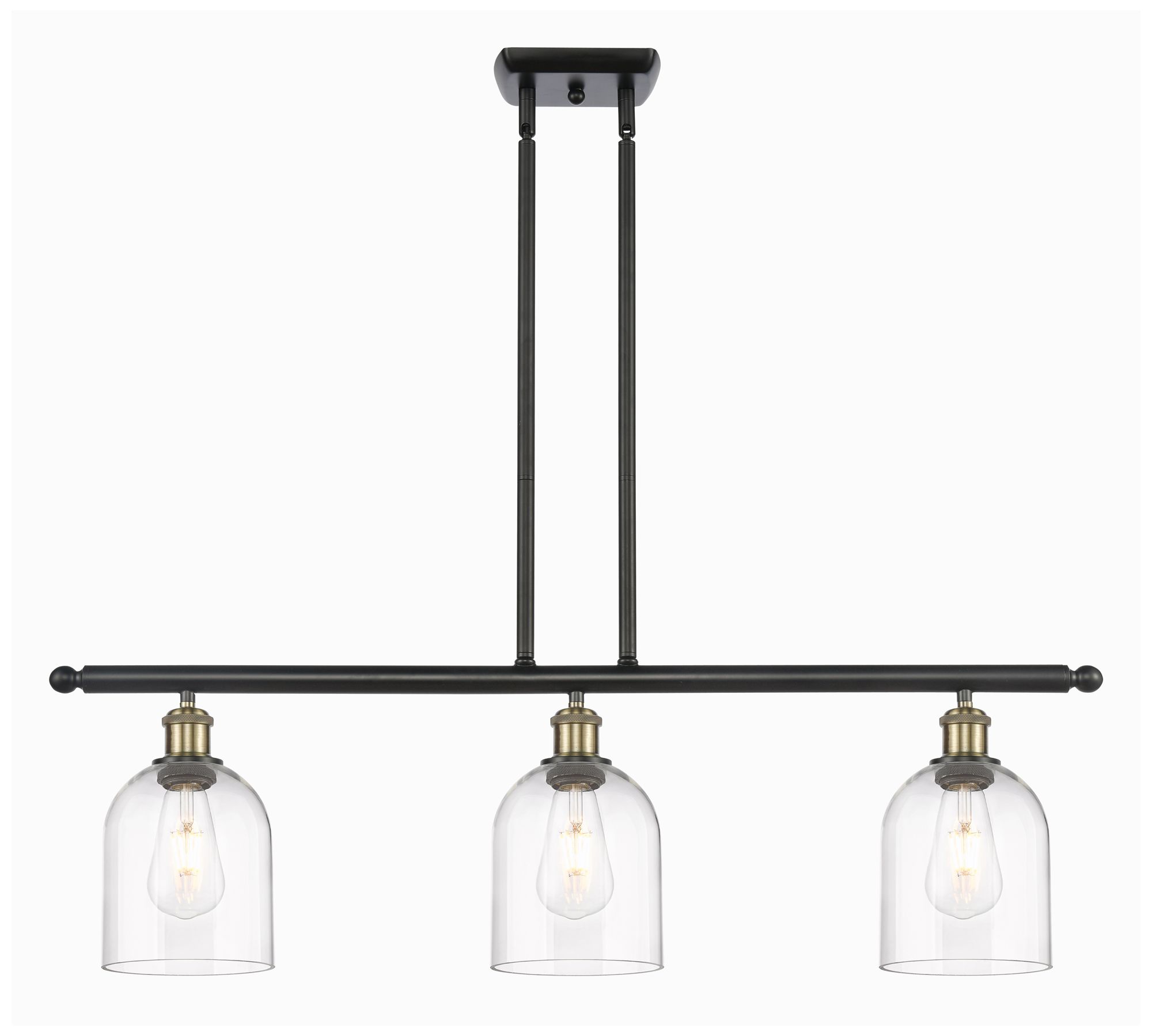 Ballston Bella 36"W 3-Light Black Brass Stem Island Light w/ Clear Sha