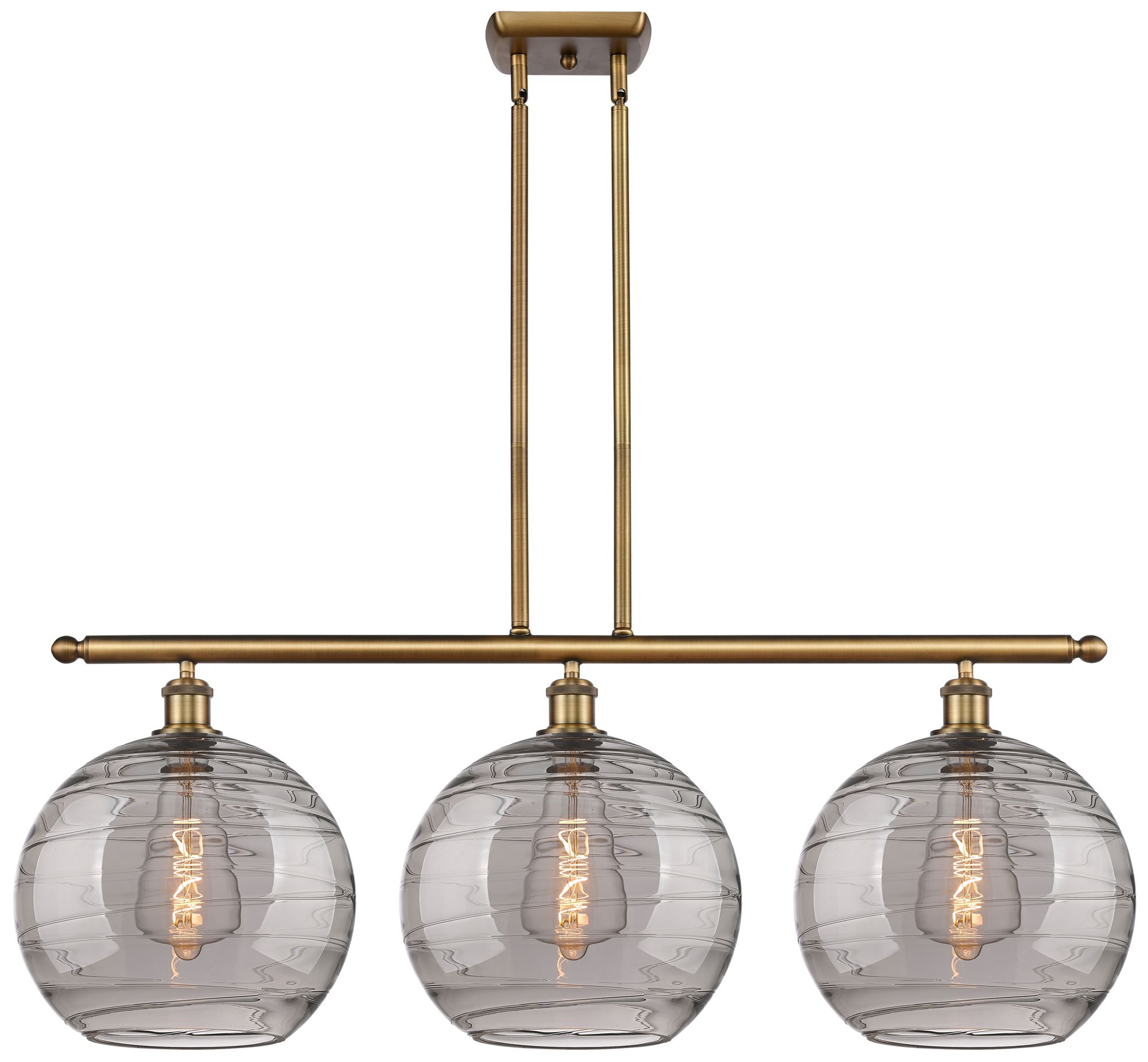 Athens 38.5"W 3-Light Brushed Brass Stem Island Light w/ Smoke Swirl S