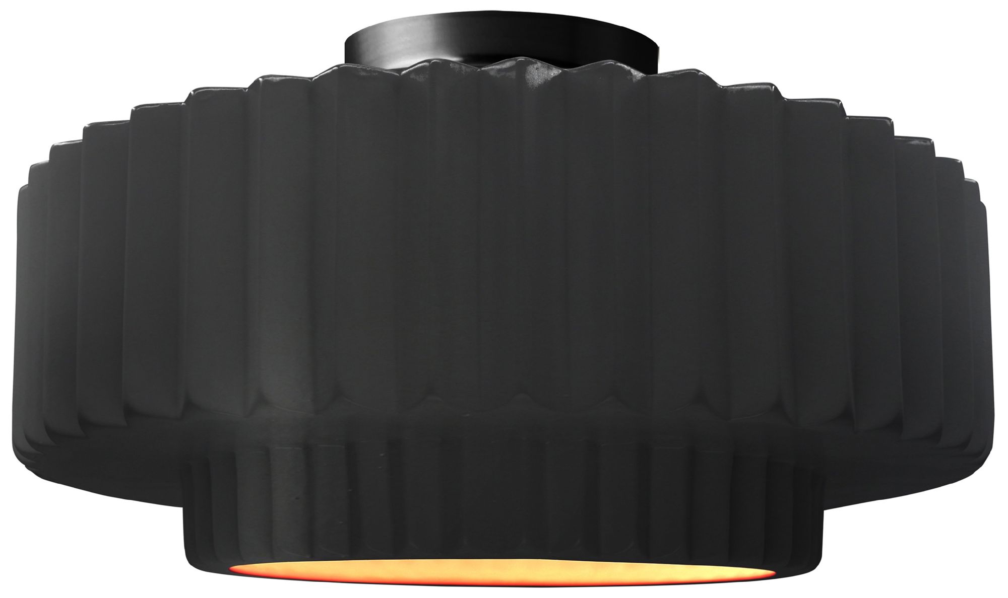 Radiance 16.5"W Carbon/Gold Frame Matte Black Large Tier Pleated Semi.