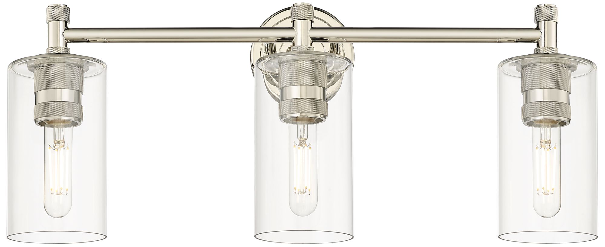 Crown Point 24" Wide 3 Light Polished Nickel Bath Light With Clear Sha