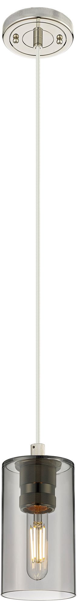 Crown Point 3.88"W Polished Nickel Cord Hung Pendant w/ Plated Smoke S