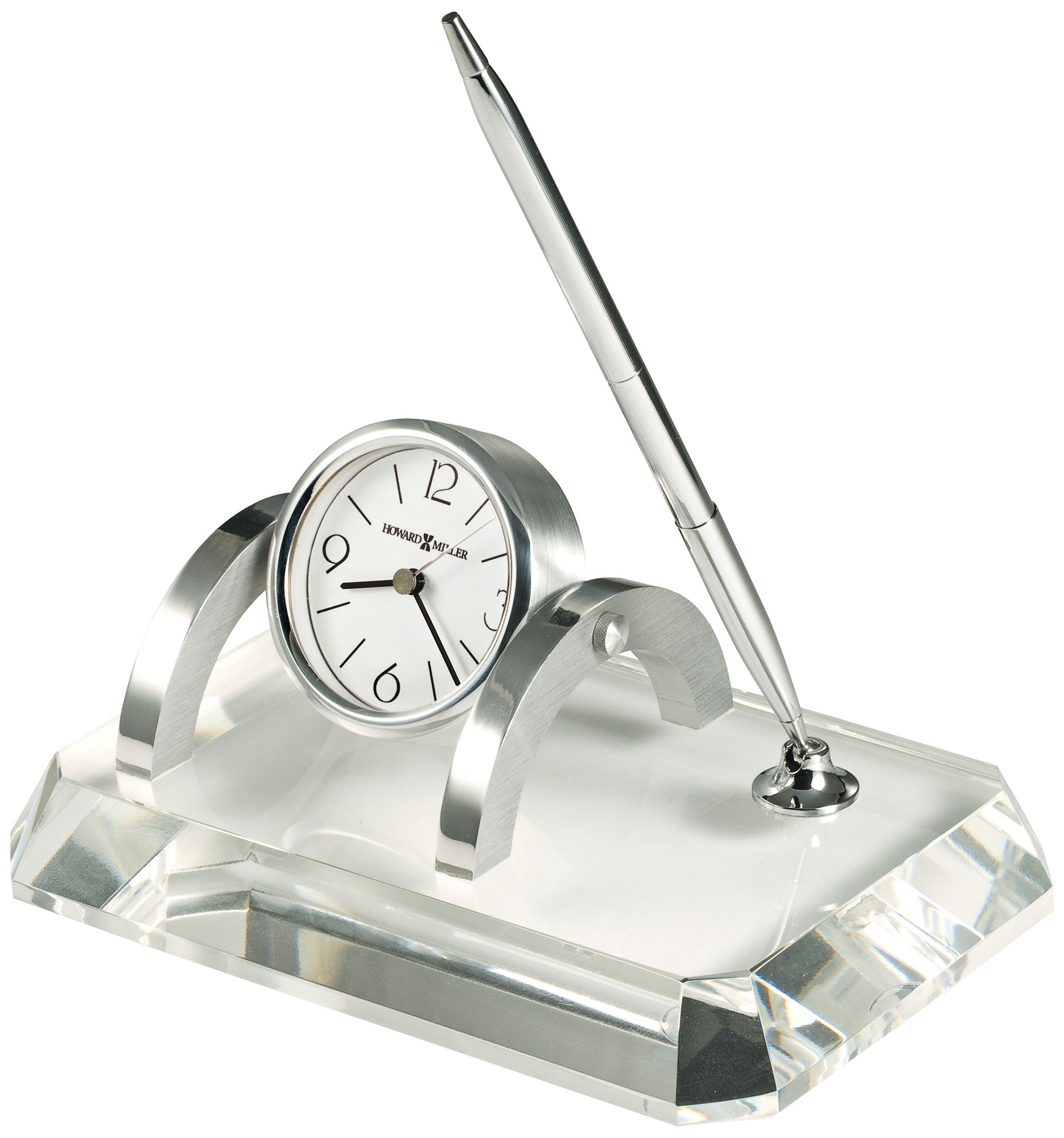 Prominence 7" Wide Glass Desk Set with Pen and Clock
