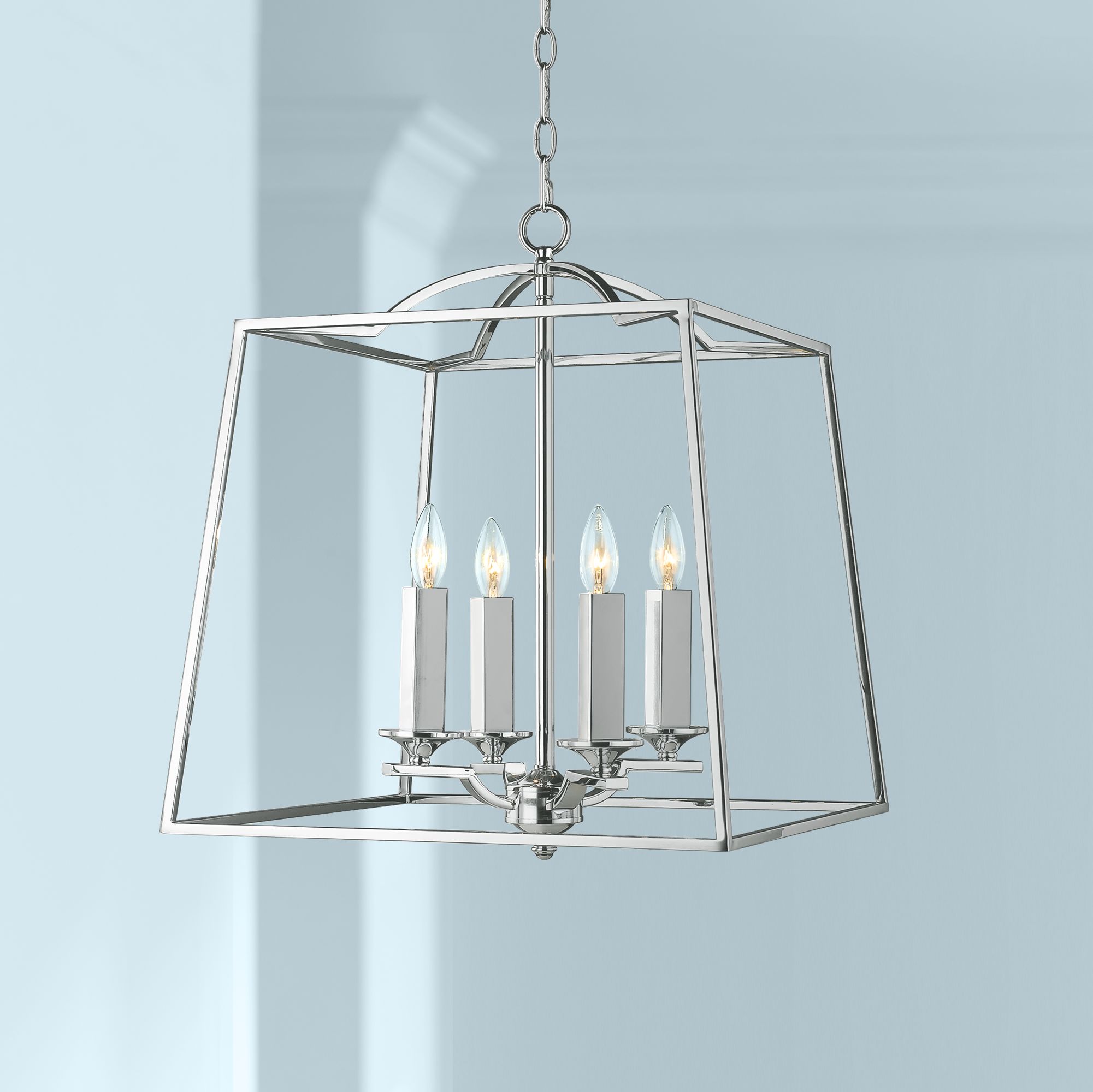 Athena 19" Wide Chrome Open Cage Large Foyer Pendant