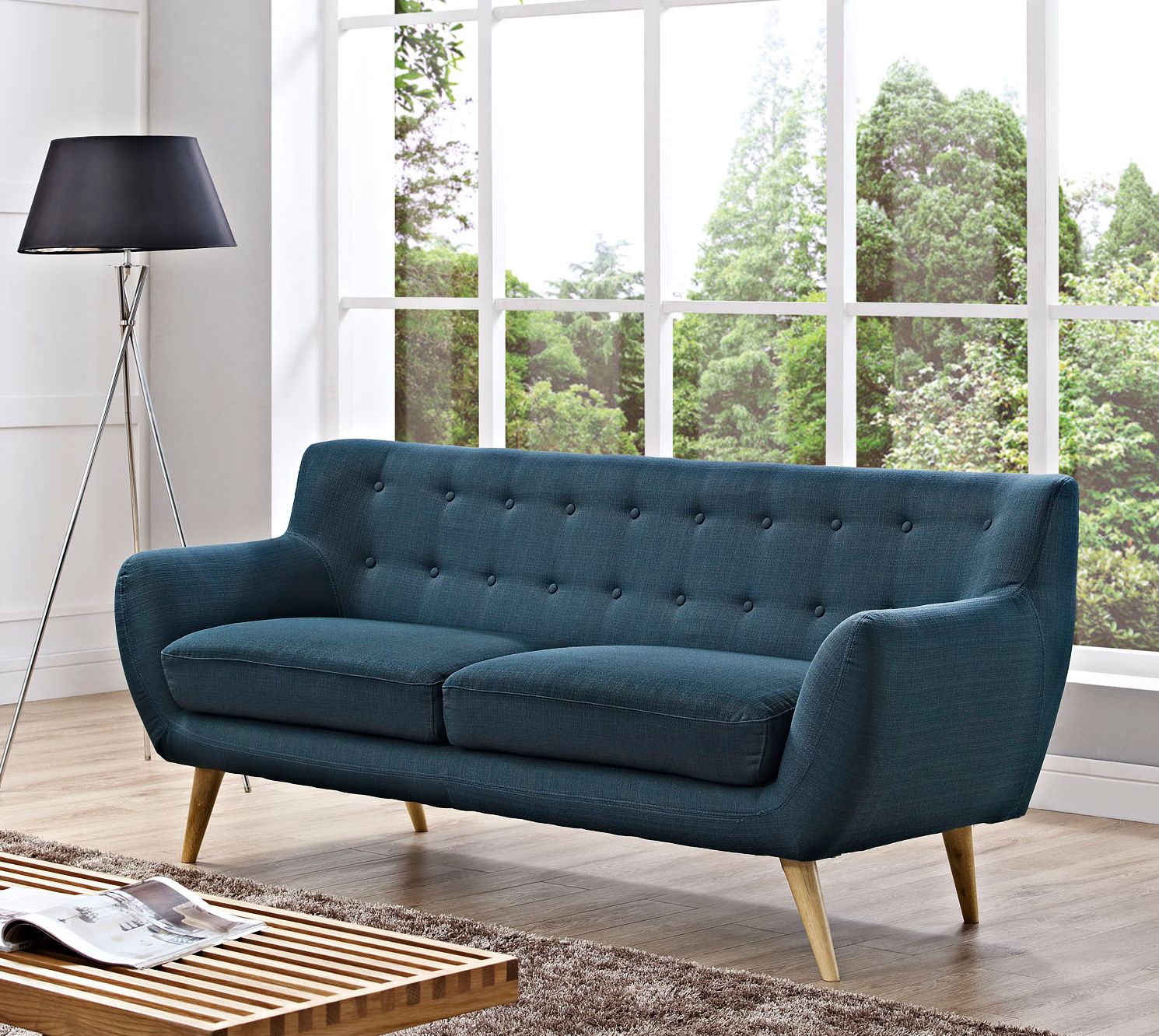Remark 74" Wide Azure Blue Fabric Tufted Modern Sofa