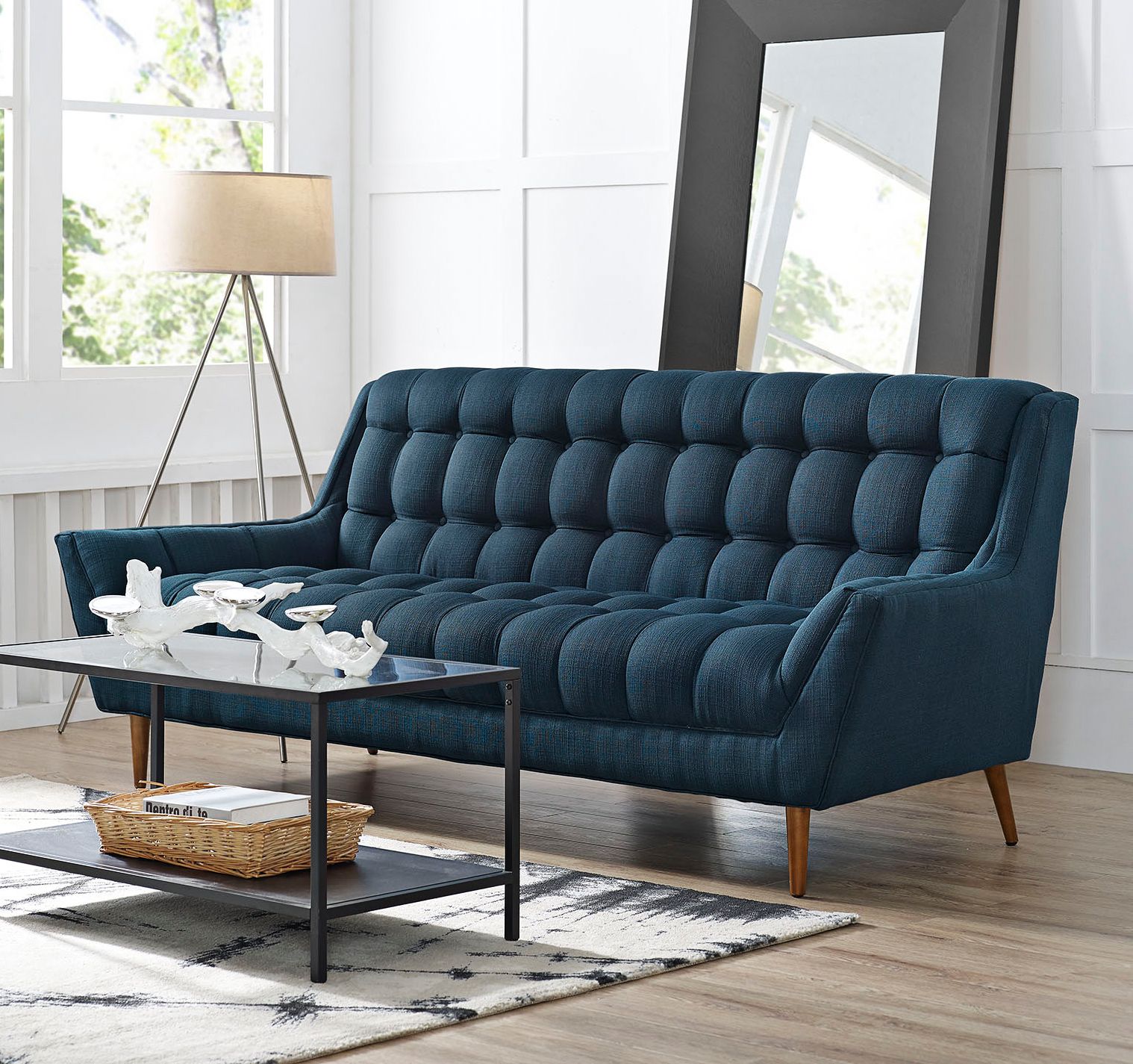 Response Azure 89" Wide Fabric Tufted Sofa