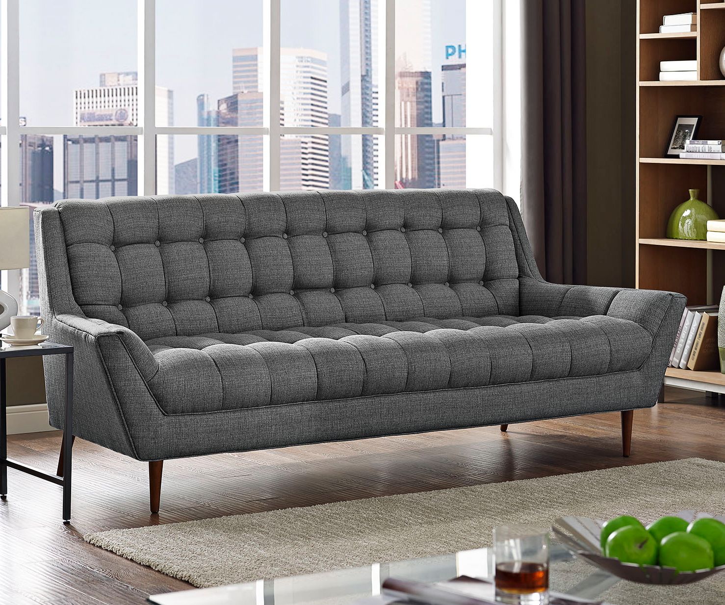 Response 89" Wide Gray Fabric Tufted Sofa