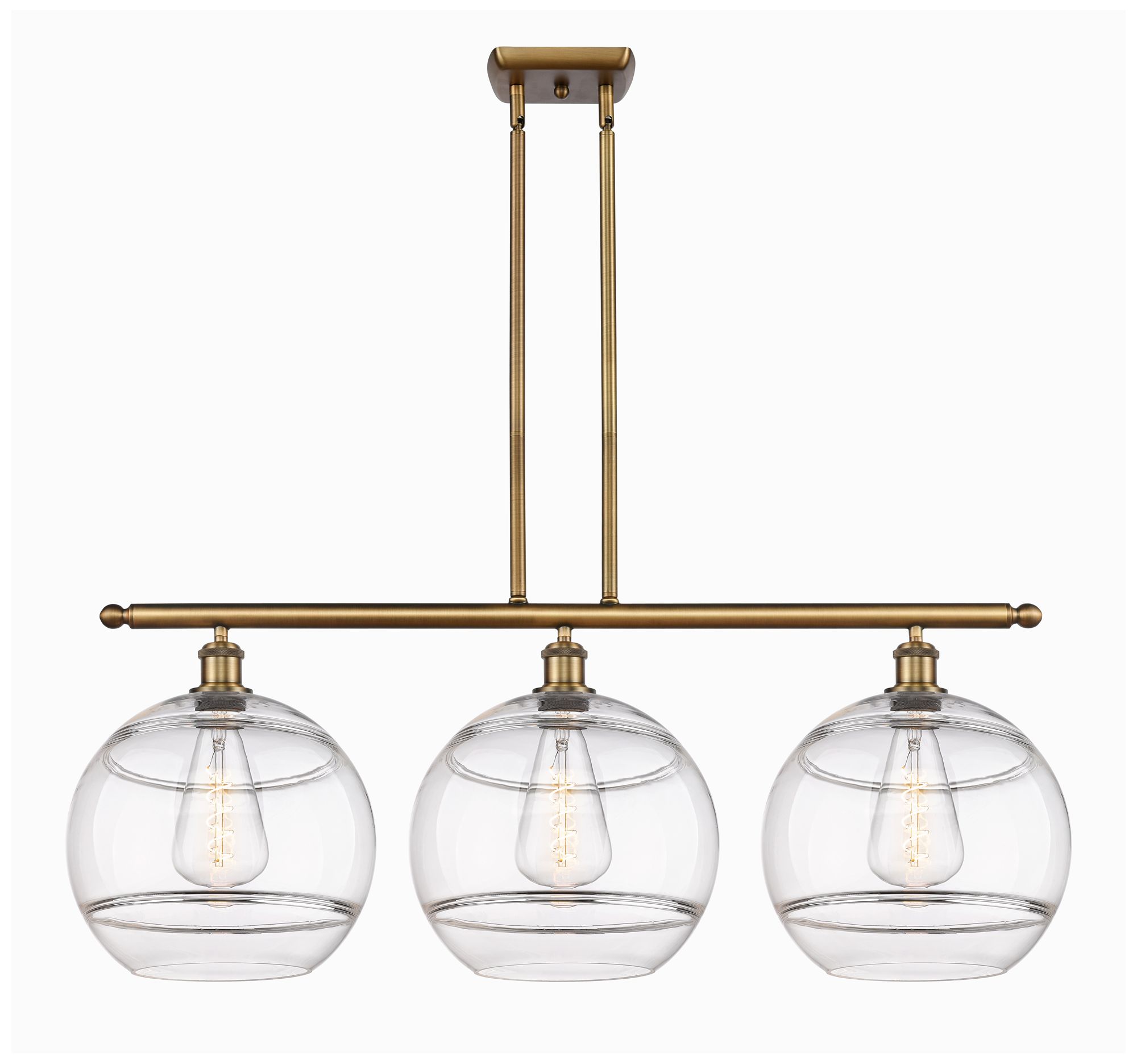 Rochester 38.5"W 3-Light Brushed Brass Stem Island Light w/ Clear Shad