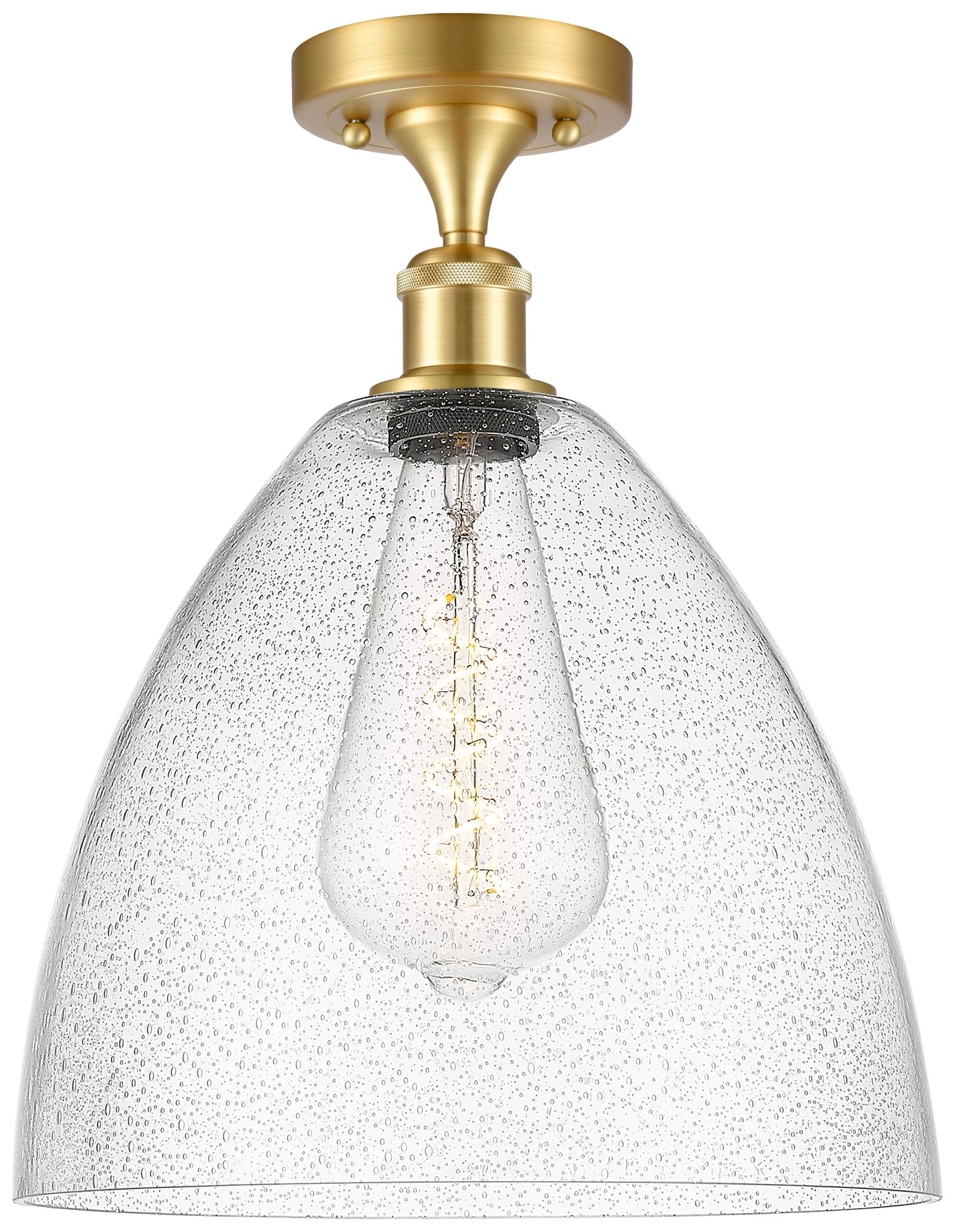Bristol Glass 12" LED Semi-Flush Mount - Satin Gold - Seedy Shade