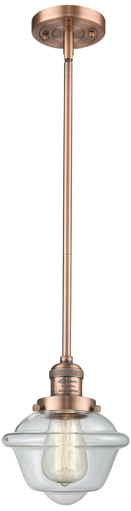 Franklin Restoration Oxford 8" Copper Stemmed Mini Pendant w/ Clear Sh