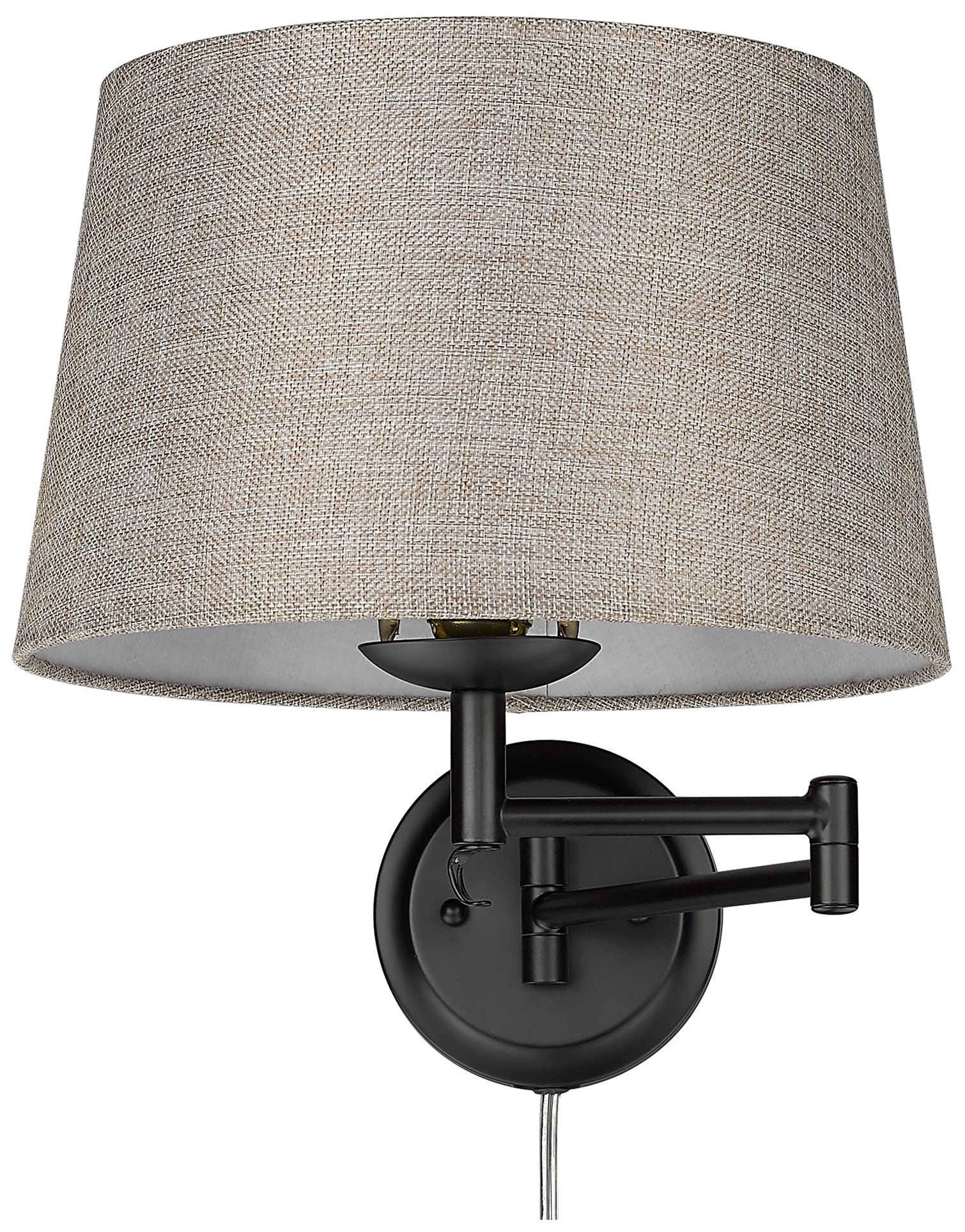 Eleanor 12" Wide Matte Black 1-Light Swing Arm with Natural Sisal