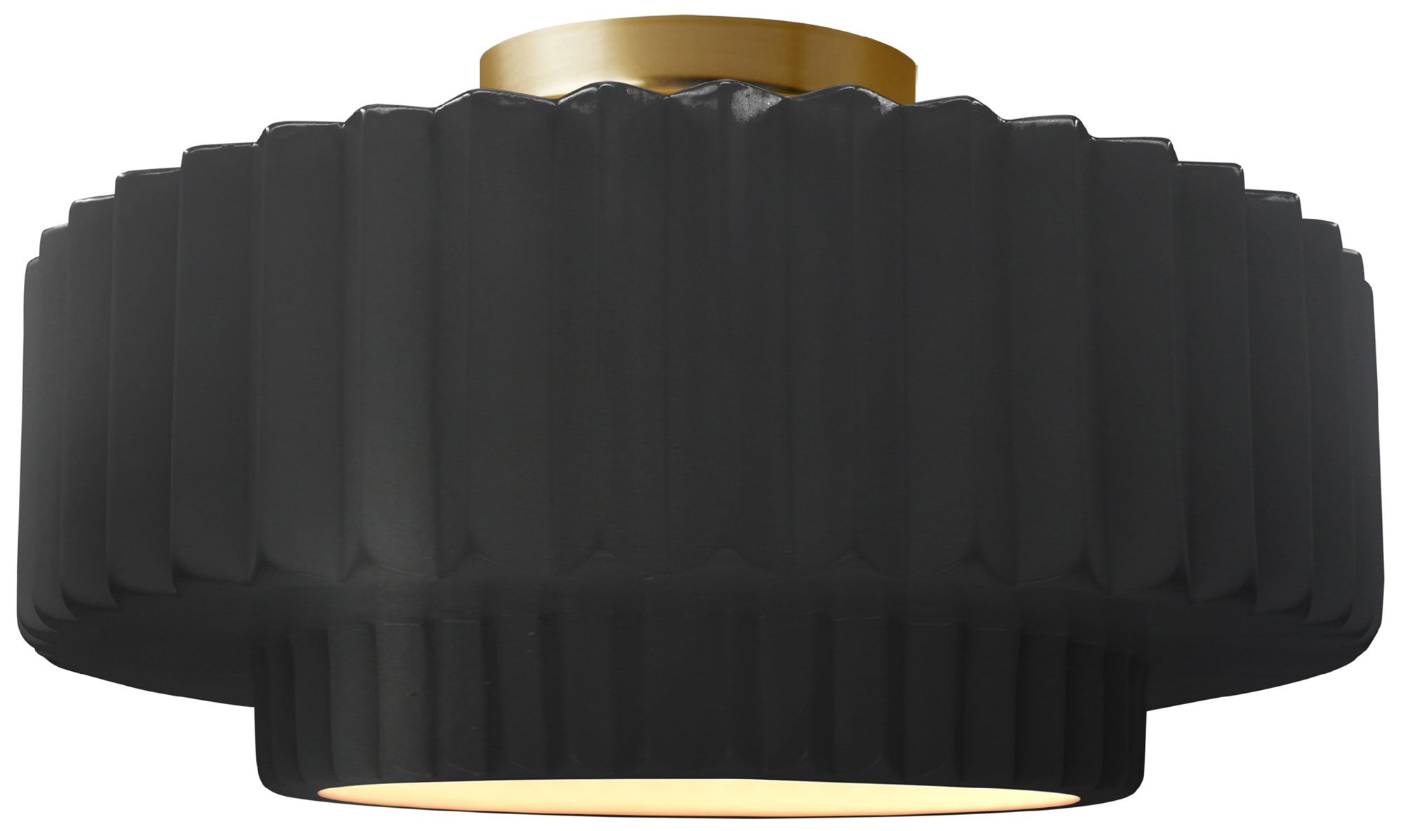 Radiance 16.5"W Carbon Frame Brushed Brass Large Tier Pleated Semi.Flu