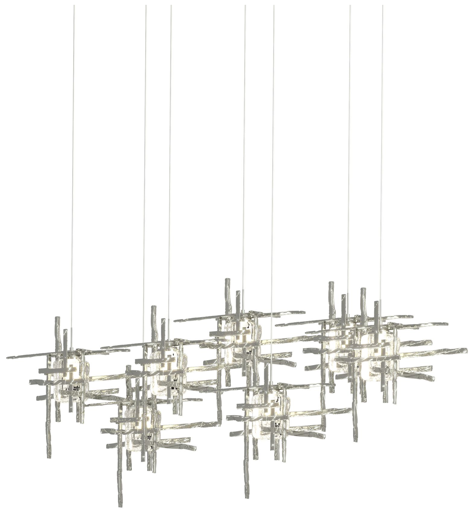 Tura 53.6"W 7-Light Rectangular Sterling Long Pendant w/ Seeded Glass
