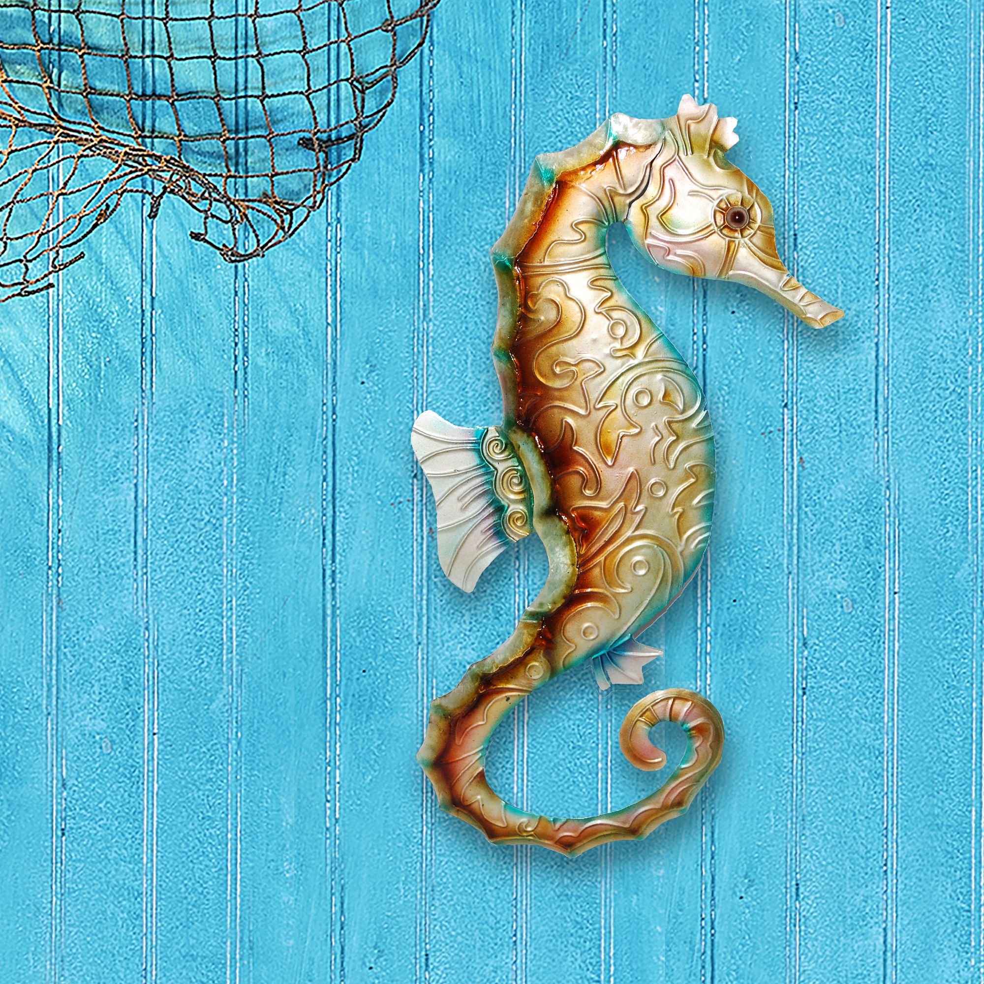 Eangee Seahorse 12"H Tan with Blue Capiz Shell Wall Decor