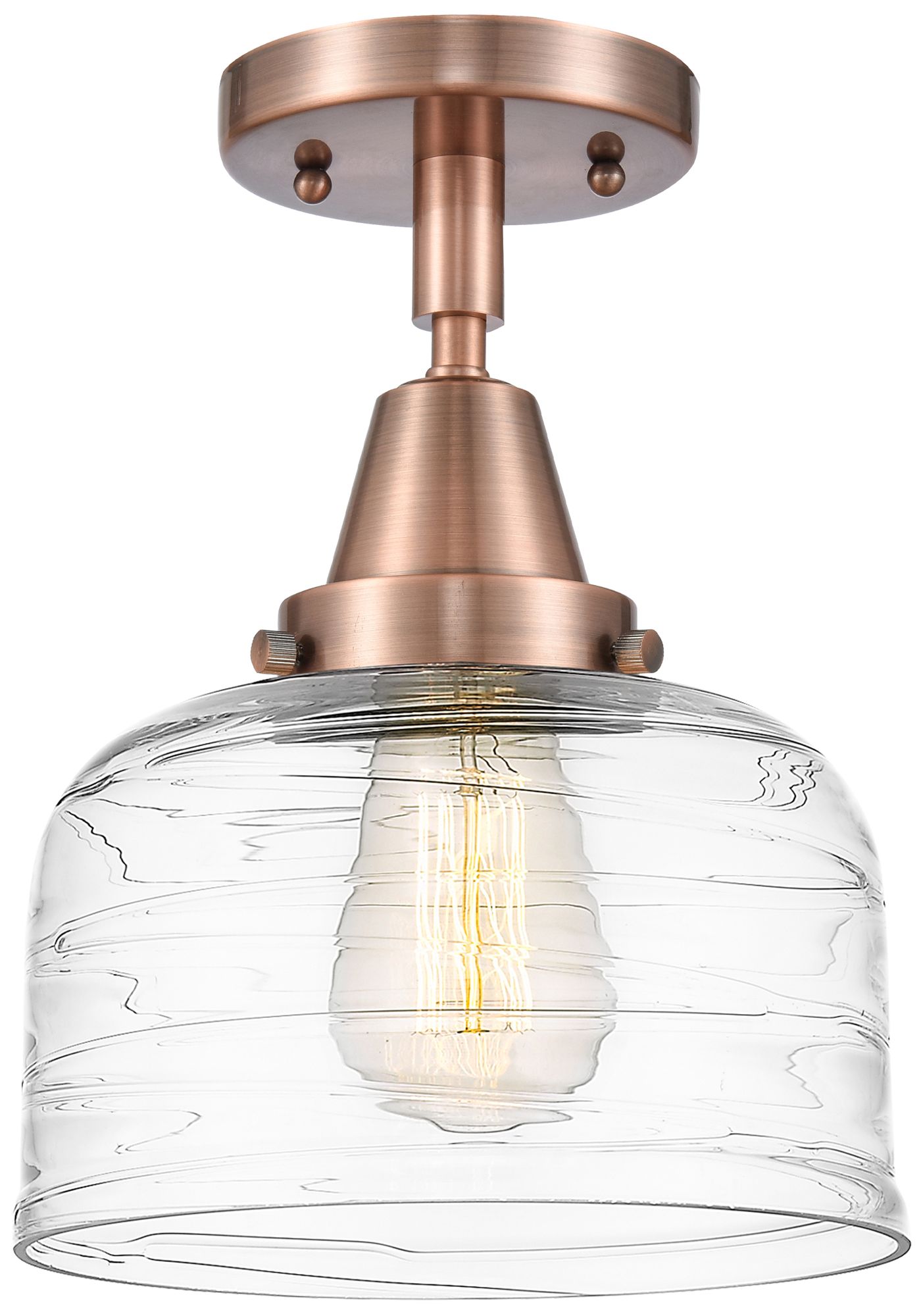 Caden Bell 8" LED Flush Mount - Antique Copper - Clear Deco Swirl Shad