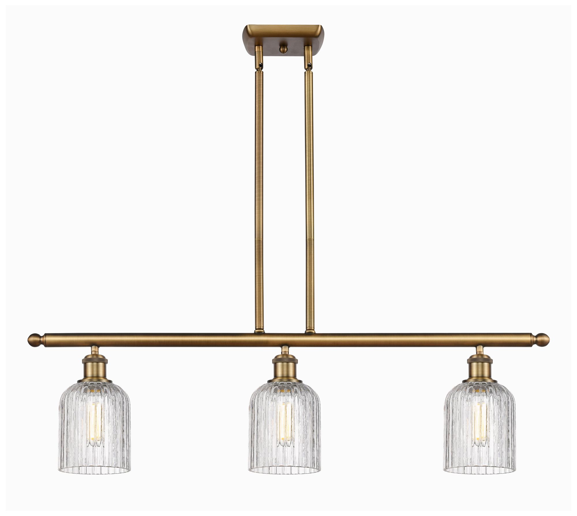 Bridal Veil 36"W 3-Light Brushed Brass Stem Island Light w/ Clear Shad
