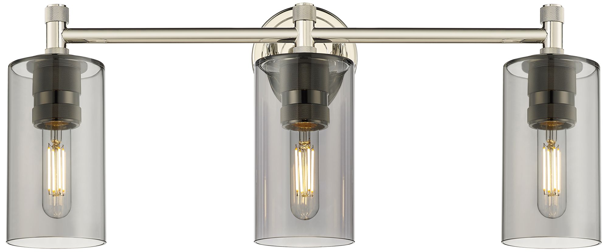 Crown Point 24" Wide 3 Light Polished Nickel Bath Light With Smoke Sha