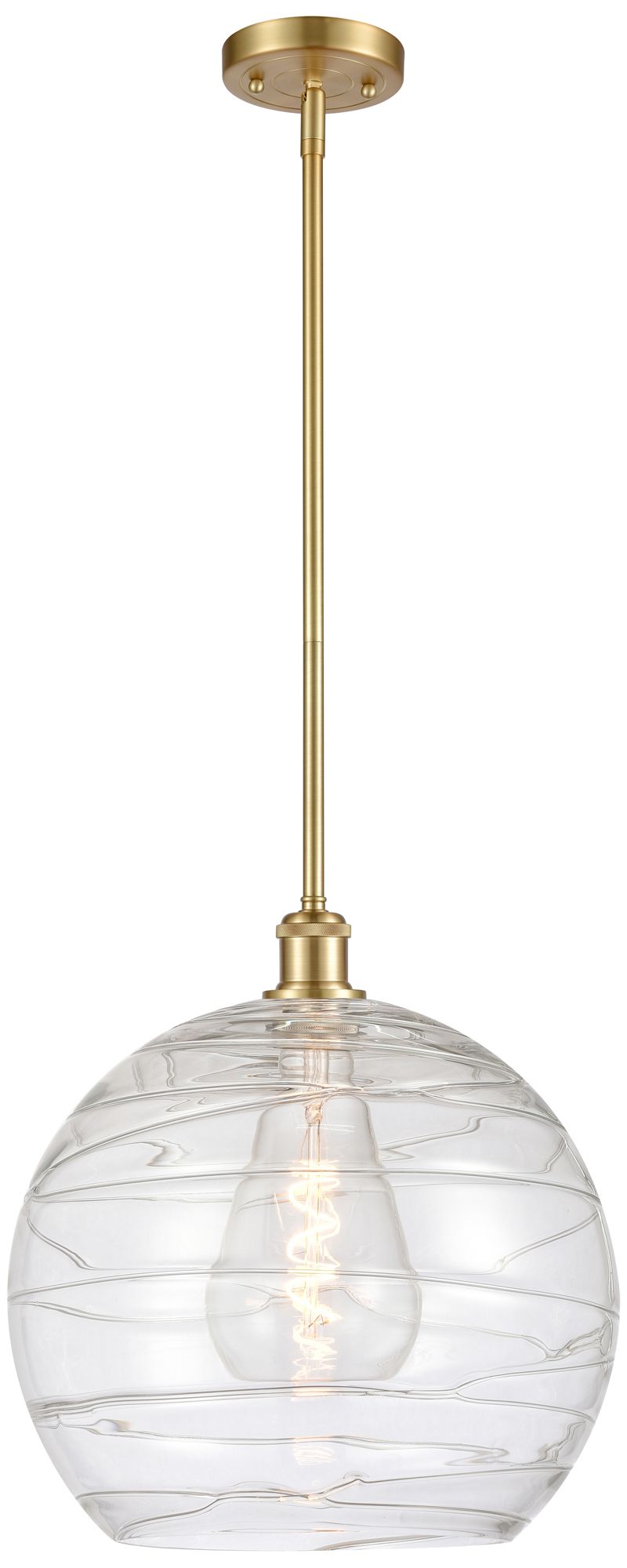 Athens 14" Satin Gold Pendant With Clear Deco Swirl Shade