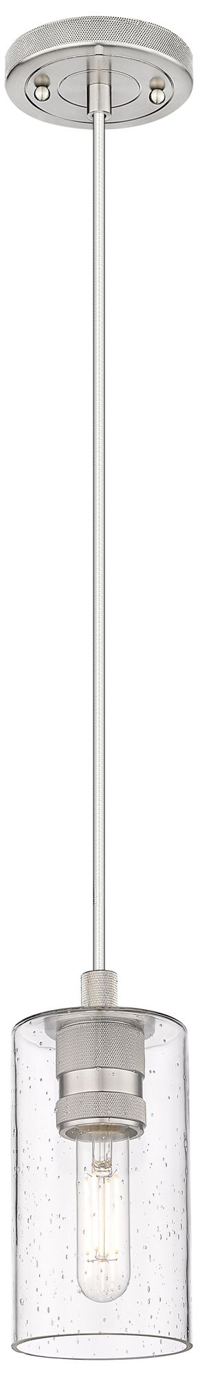 Crown Point 3.88" Wide Satin Nickel Cord Hung Pendant With Seedy Shade