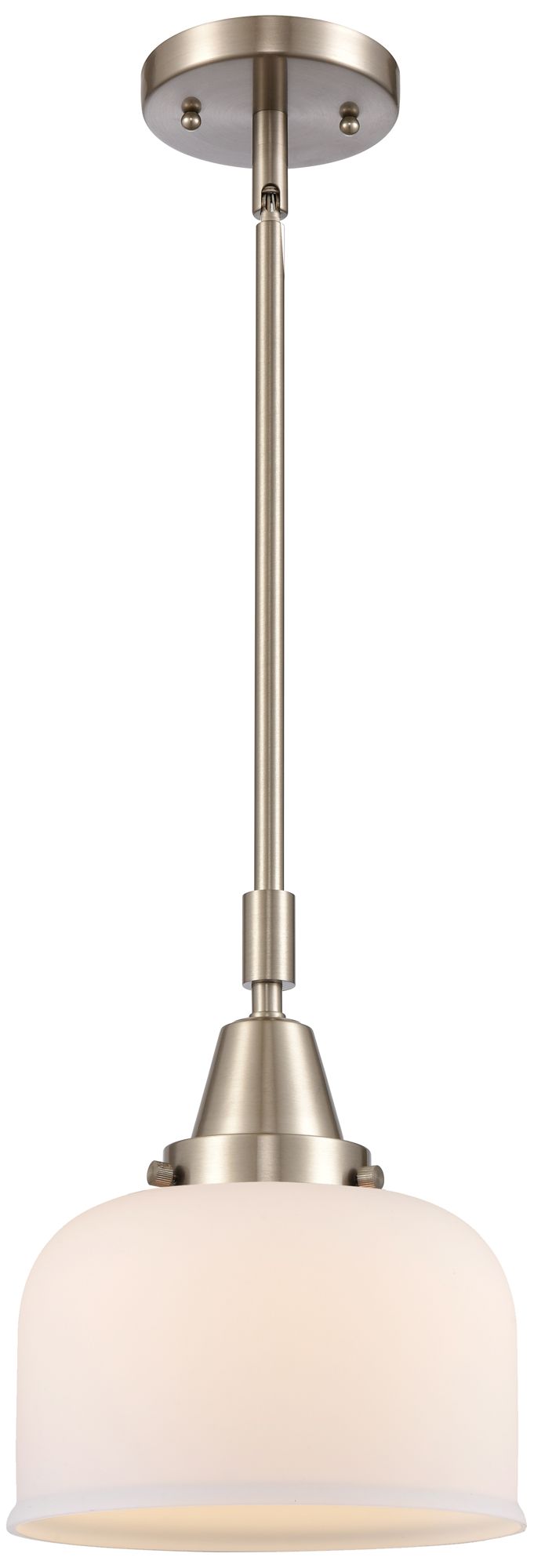 Caden Bell 8"W Brushed Satin Nickel Stem Hung Mini Pendant w/ White Sh