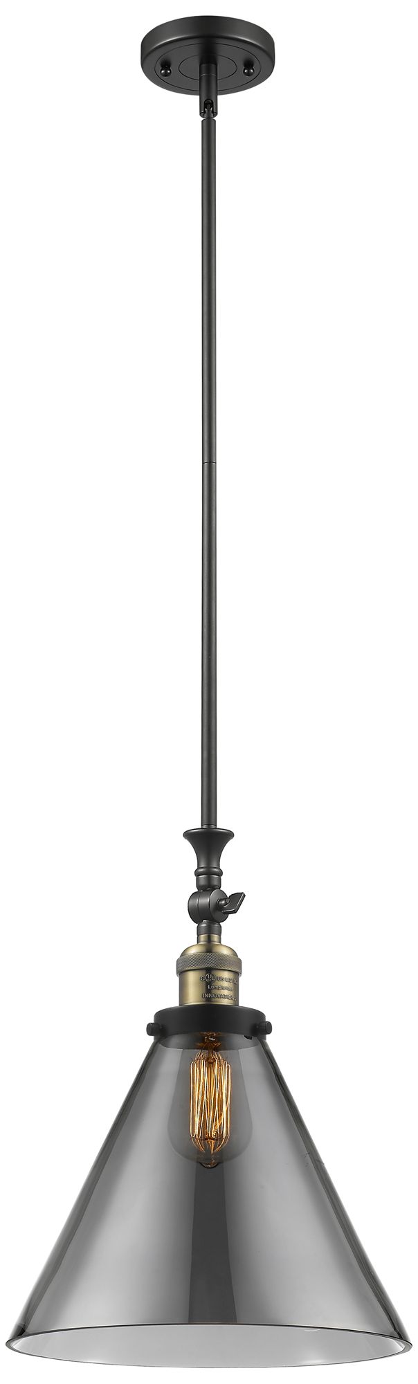 Cone 12" Wide Black Brass Stem Hung Mini Pendant w/ Plated Smoke Shade