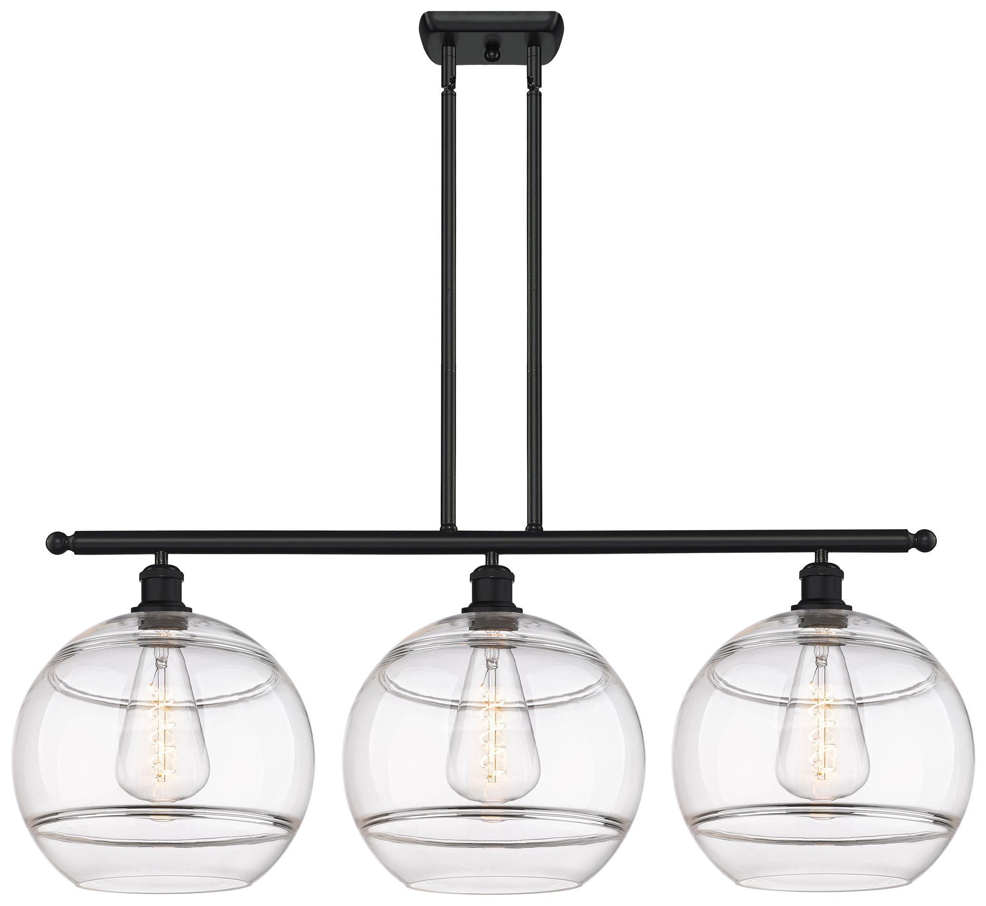 Ballston Rochester 38.5"W 3-Light Black Stem Island Light w/ Clear Sha