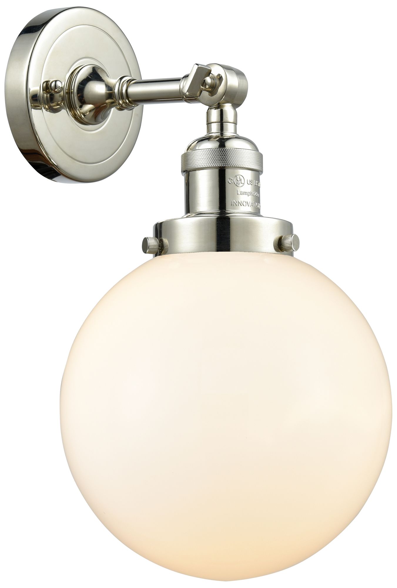 Franklin Restoration Large Beacon 8" Polished Nickel Sconce w/ White S