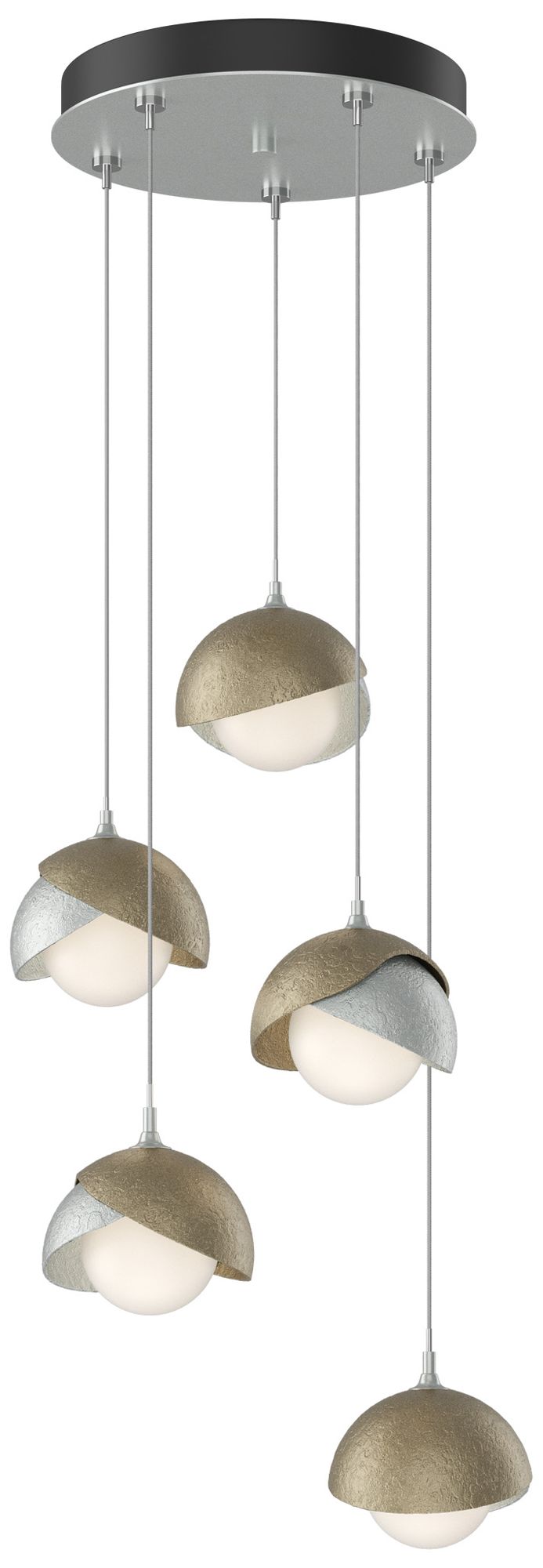 Brooklyn 16"W 5-Light Gold Accented Platinum Long Double Shade Pendant